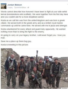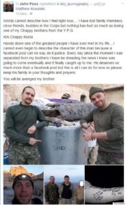 «Ο Κώστας ήταν ανυπόμονος, όπως κι εγώ άλλωστε, να πολεμήσουμε τον ISIS», είχε πει για κείνον στο ρεπορτάζ του BBC ο Πέτρος «Σέρβαν».