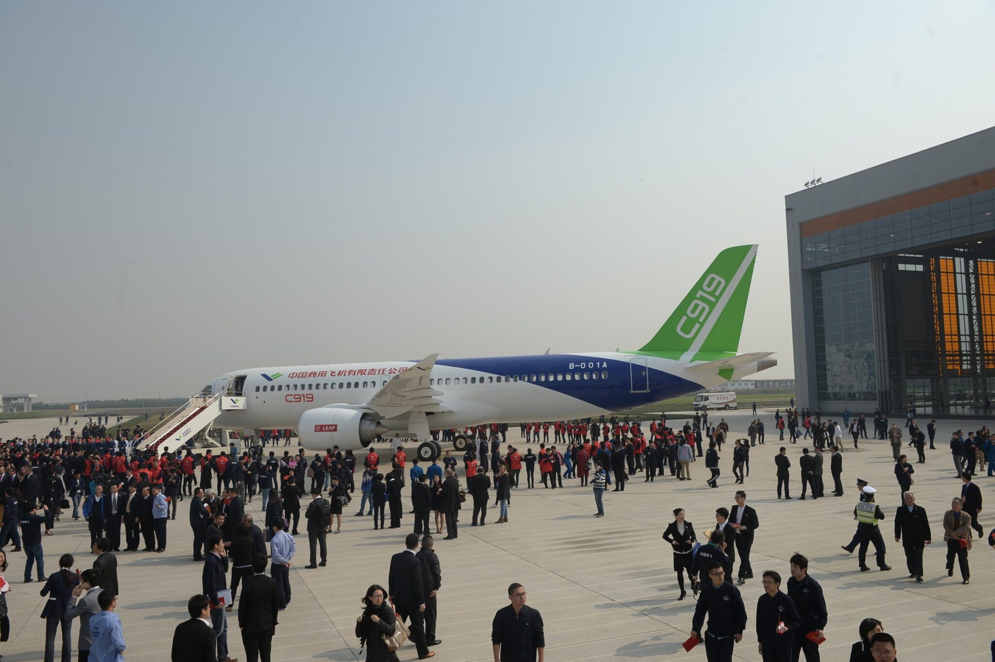 Το C919, το μακρόστενο, δικινητήριο τζετ, μήκους 39μ και με δυνατότητα φιλοξενίας 168 επιβατών αποκαλύφθηκε με κάθε μεγαλοπρέπεια τη Δευτέρα όταν μια βαριά κόκκινη κουρτίνα, πίσω από τη οποία «κρυβόταν», παραμέρισε για να κάνει την εμφάνισή του το αεροσκάφος.