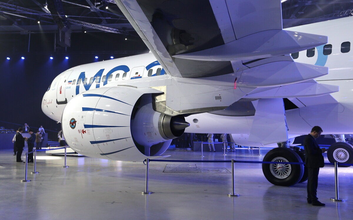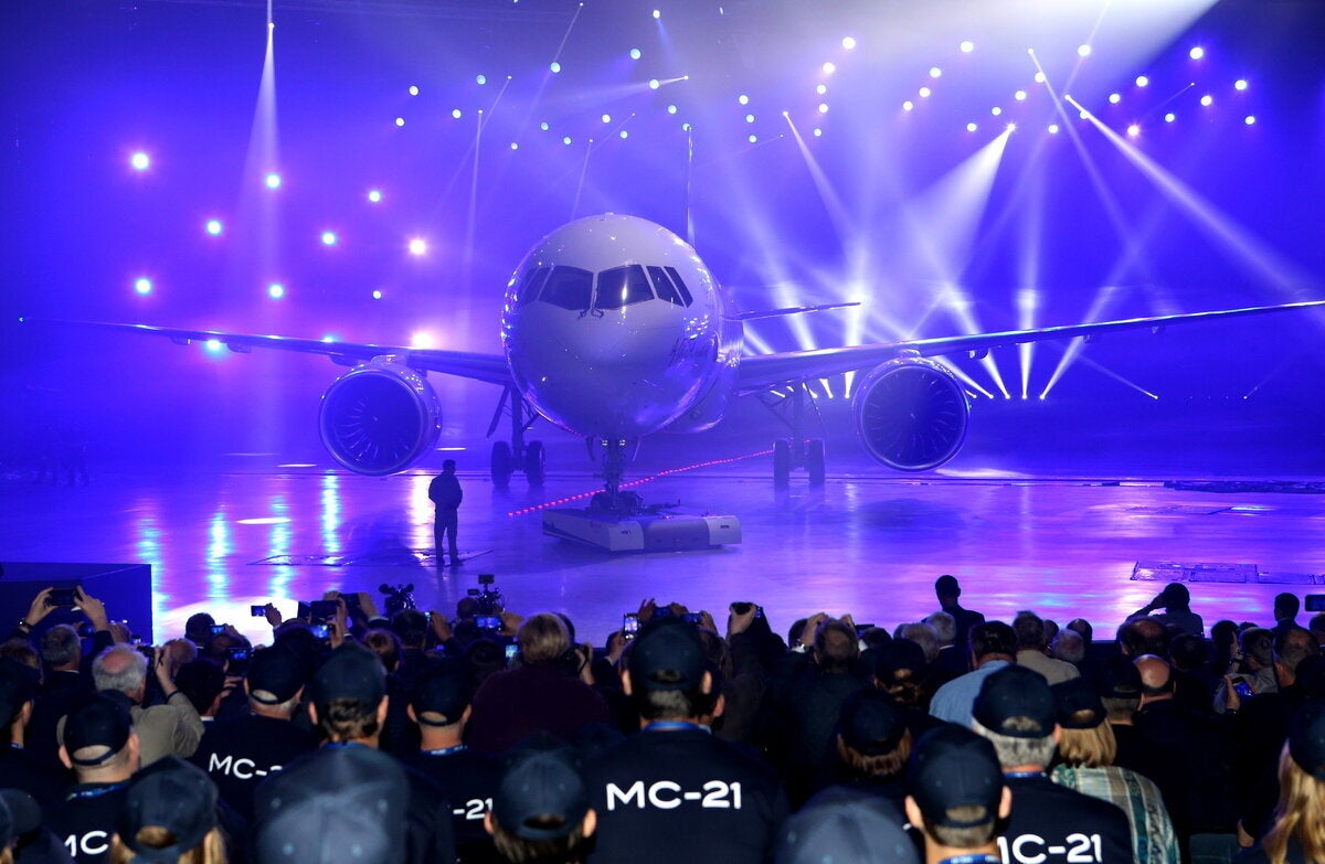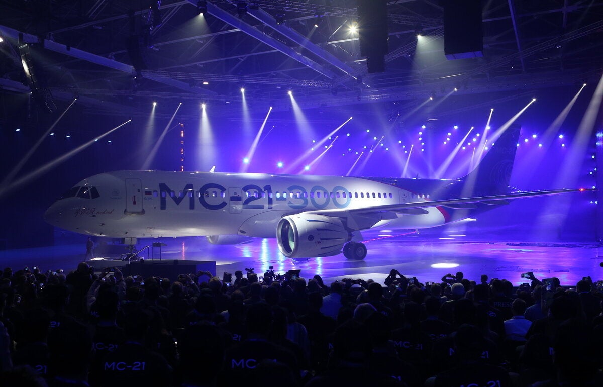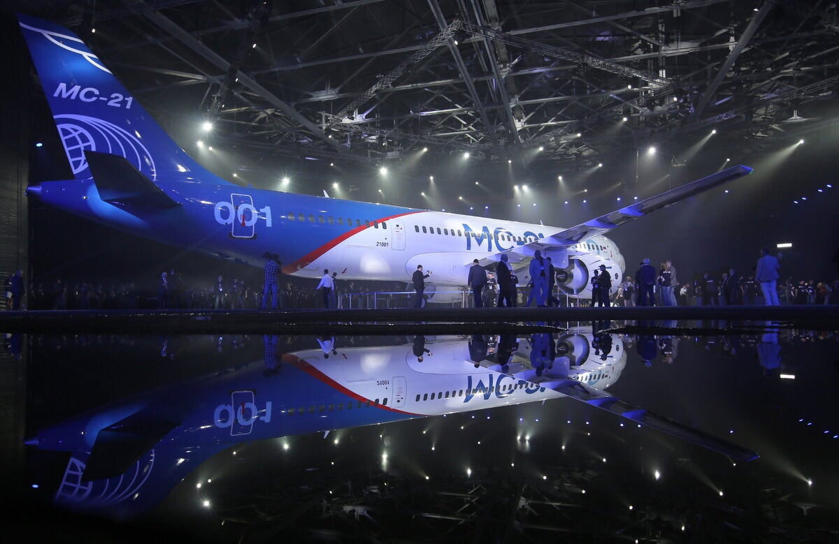 Πρόκειται για το MC-21 (κάποιες φορές χαρακτηρίζεται MS-21, σύμφωνα με το Reuters), που είναι ακόμα σε στάδιο δοκιμών, με την παραγωγή του να αναμένεται να αρχίσει μέσα στο επόμενο έτος.