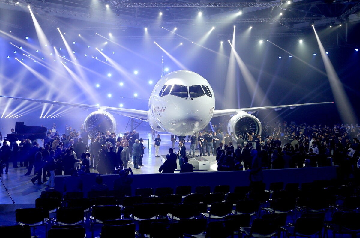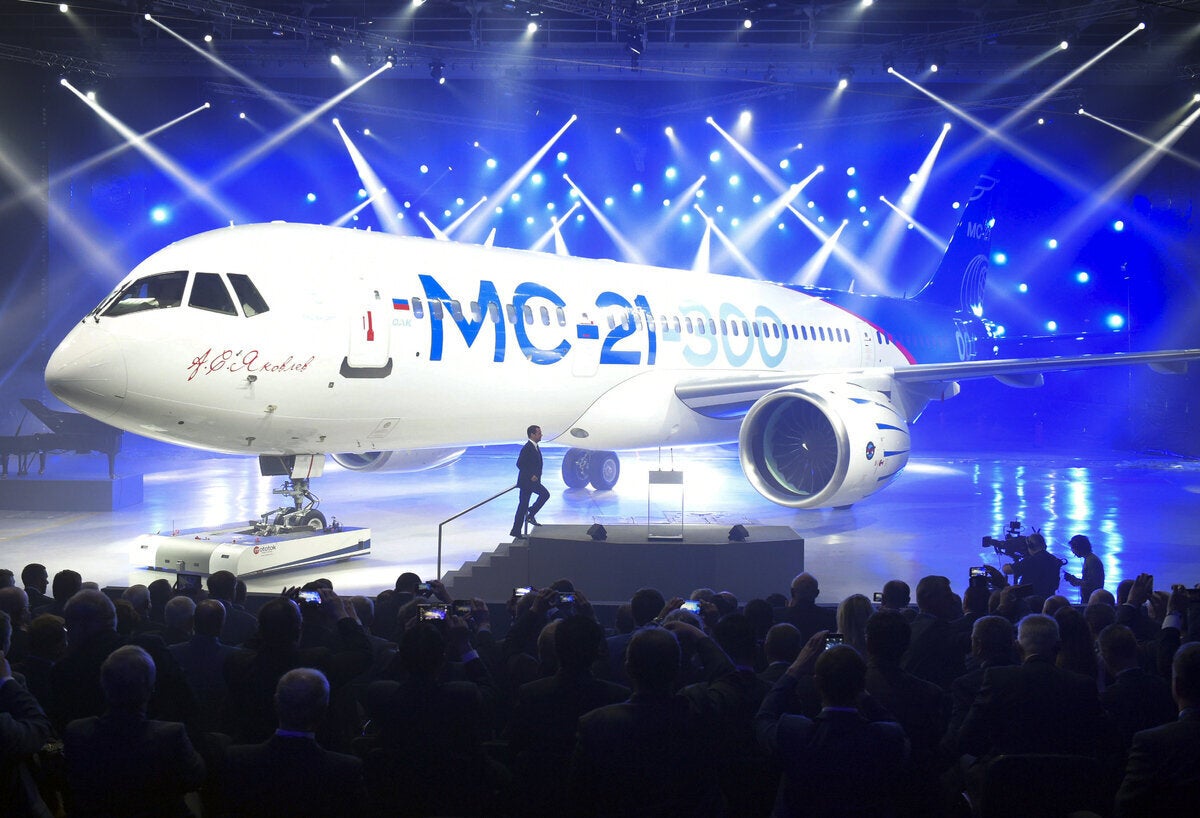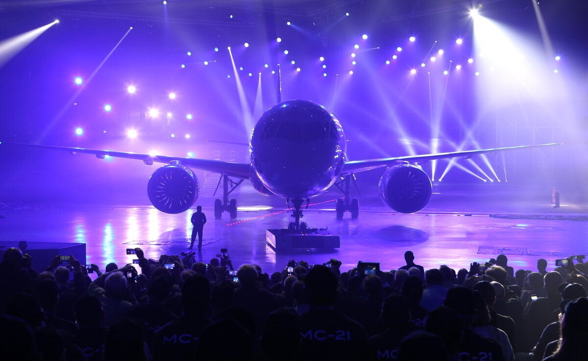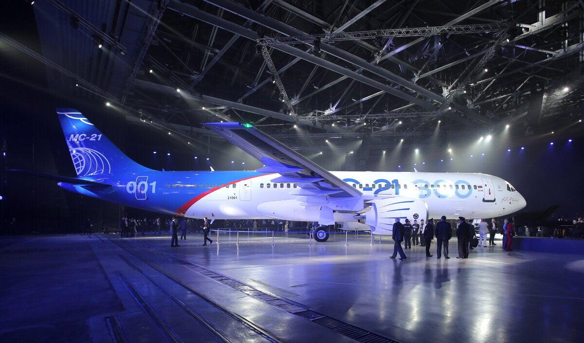 Πρόκειται για το MC-21 (κάποιες φορές χαρακτηρίζεται MS-21, σύμφωνα με το Reuters), που είναι ακόμα σε στάδιο δοκιμών, με την παραγωγή του να αναμένεται να αρχίσει μέσα στο επόμενο έτος.