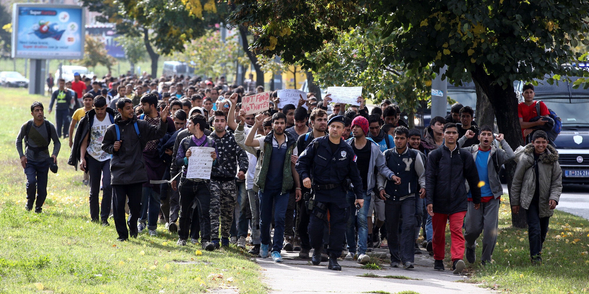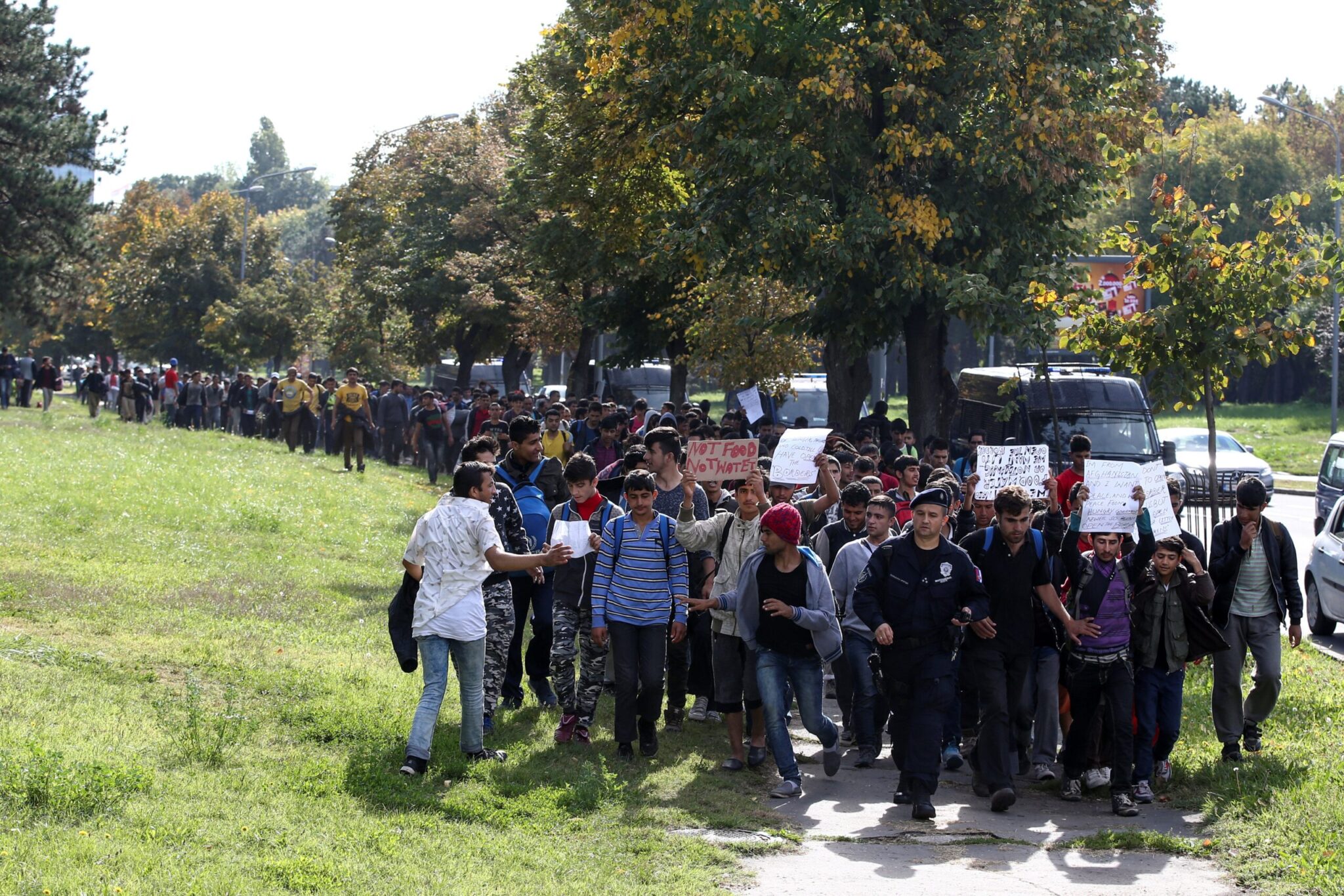 Εκατοντάδες πρόσφυγες ξεκίνησαν το πρωί της Τρίτης με τα πόδια από το κέντρο του Βελιγραδίου κατευθυνόμενοι προς τα σύνορα με την Ουγγαρία, κρατώντας πανό και φωνάζοντας συνθήματα για ανοικτά σύνορα, δήλωσαν αυτόπτες μάρτυρες στο πρακτορείο Reuters.