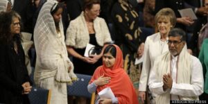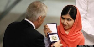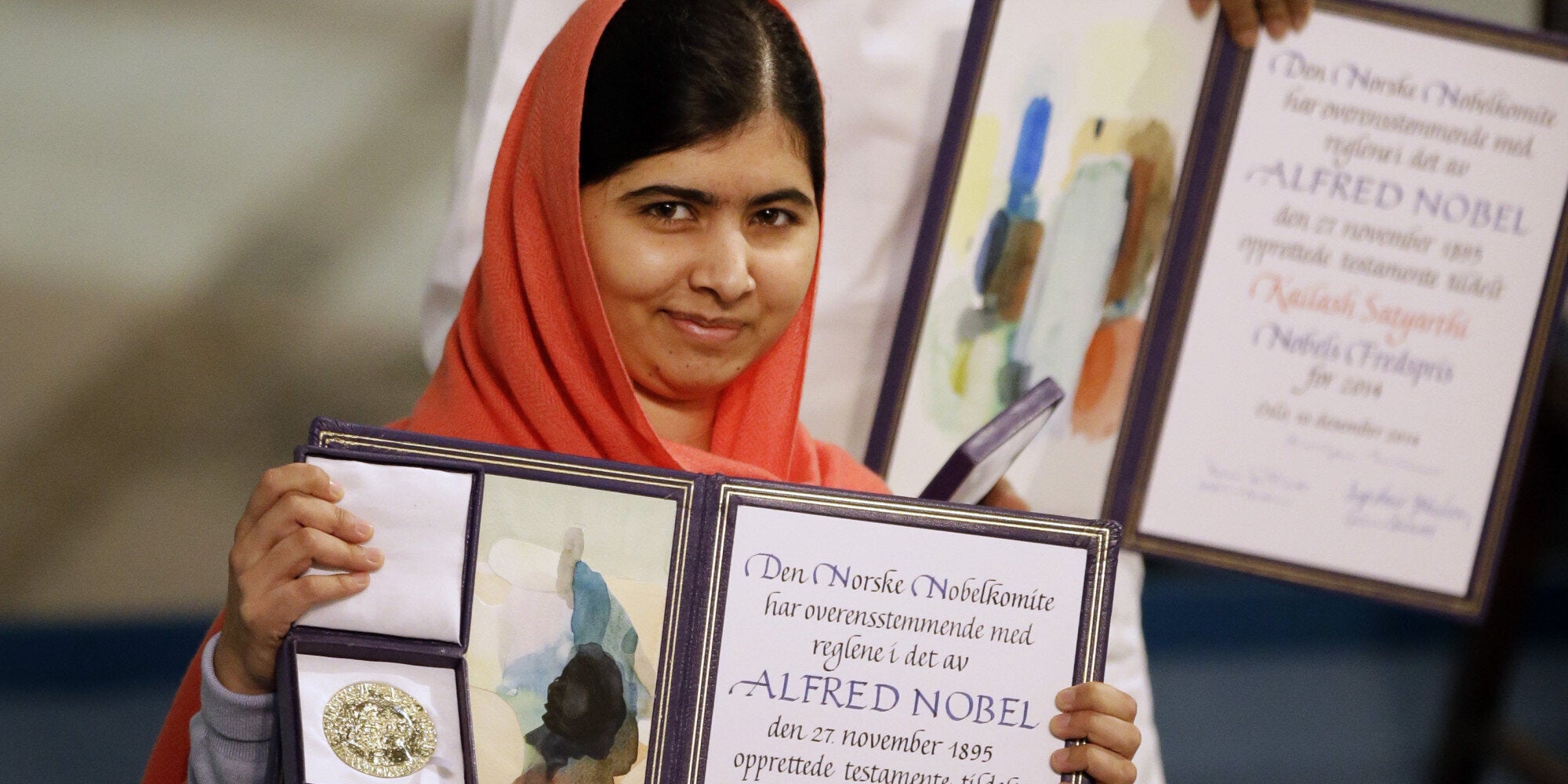 Η Πακιστανή έφηβη Μαλάλα Γιουσαφζάι, το πρόσωπο σύμβουλο στη μάχη κατά του «σκοταδισμού» που θέλουν να επιβάλουν οι Ταλιμπάν, παρέλαβε και επίσημα το βραβείο Νομπελ Ειρήνης ενώ την τιμητική διάκριση «μοιράστηκε» με τον επίσης νεαρό Ινδό ακτιβιστή Καϊλάς Σατιάρτι.