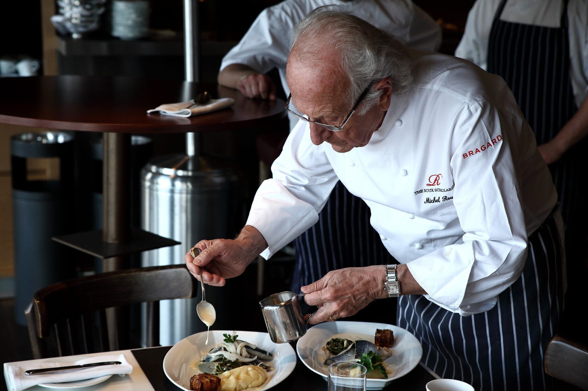 Στο εστιατόριο Avenue του ξενοδοχείου Μetropolitan, επικρατεί ησυχία. Πίσω από τον ανοιχτό πάγκο του μάγειρα βρίσκεται ο Μισελ Ρου, ο θρύλος της γαλλικής μαγειρικής, ο σεφ του οποίου το εστιατόριο είναι το μόνο εκτός Γαλλίας που έχει διατηρήσει 3 αστέρια Μichelin για πάνω από 25 χρόνια. Ο Ρου, ασπρομάλλης και επιβλητικός, κάνει κάποιες τελευταίες διορθώσεις σε ένα πιάτο με σκουμπρί σε δυο διαφορετικές εκδοχές ενώ η ομάδα του τον παρακολουθεί με σχεδόν θρησκευτική προσήλωση. «Ναι, ναι μου αρέσει» λέει με βαριά γαλλική προφορά στα αγγλικά ή μετά «βάλε λίγο από αυτό ακόμα». Ο Ρου, που μένει πια μόνιμα στην Ελβετία, είναι executive chef στο Avenue εδώ και 2,5 χρόνια. Έρχεται στην Αθήνα, 3-4 φορές το χρόνο, δοκιμάζουν νέα πιάτα και ανανεώνουν το μενού.