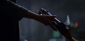 Συνεχίζοντας να μιλά για τη Δύναμη, ο Luke (τον οποίο δεν έχουμε δει ακόμα, ούτε και θα δούμε σε όλο το trailer) λέει «Την έχει η αδερφή μου». Ζουμ στο φωτόσπαθο του Luke που το δίνει στην Leia. Μισό λεπτό όμως, πώς γίνεται να είναι αυτό το φωτόσπαθο του Luke, αφού είχε πέσει στο κενό όταν του έκοψε το χέρι ο πατέρας του (να μια πρόταση που ήθελα πάντα να γράψω). Το ξαναβρήκε και το δίνει στην αδερφή του; Ή μήπως είναι flashback;