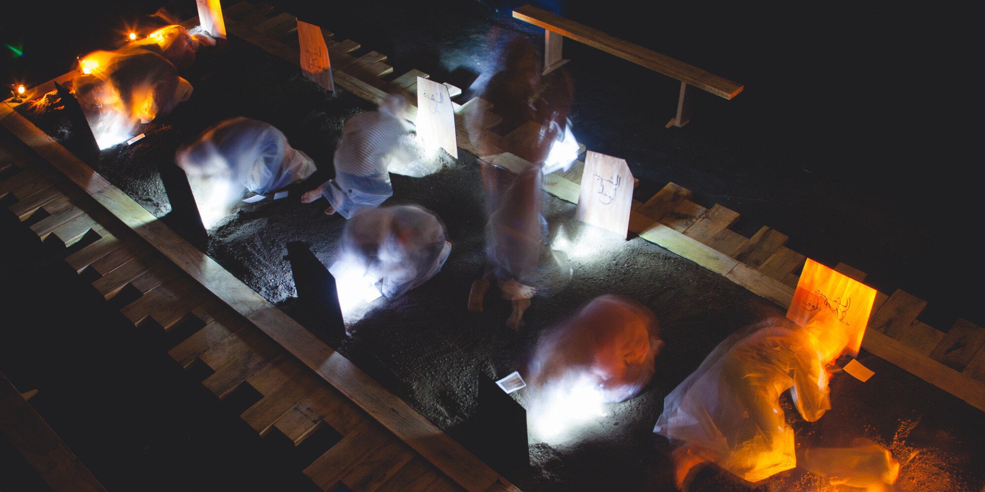 - Τέλος το πιο συγκλονιστικό απ’ όλα το Gardens Speak της Λιβανέζας Τania El Khoury μια χωμάτινη ηχητικη εγκατάσταση κατά την οποία οι θεατές σκύβουν στο χώμα και ακούν τις αληθινές ιστορίες δέκα Σύριων πολιτών που σκοτώθηκαν τα πρώτα έτη της επανάστασης. Ο τίτλος βγαίνει από μια συγκινητική, προσωπική ιστορία μιας και όπως εξηγεί η ίδια η El Κhoury υπάρχουν σπίτια στη Συρία που κρύβουν τάφους στους κήπους τους.Εκεί είναι θαμένοι αυτοί που σκοτώθηκαν στις πρώτες μαζικές αντικυβερνητικές διαδηλώσεις του 2011-13- για να μη στοχοποιηθούν από το καθεστώς οι φίλοι και οι συγγενείς τους τους έθαβαν στους κήπους τους.