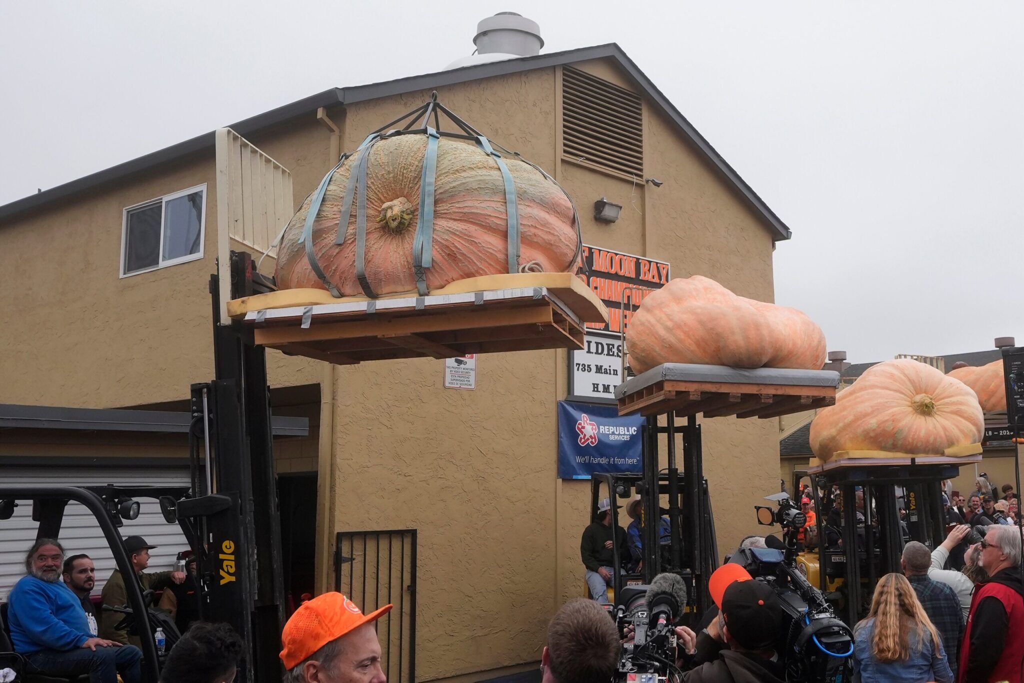 Η κολοκύθα του Travis η οποία μπορεί να χρησιμοποιηθεί σε τουλάχιστον 687 πίτες κέρδισε το 50ο Παγκόσμιο Πρωτάθλημα Pumpkin Weigh-Off στο Half Moon Bay της Καλιφόρνια.