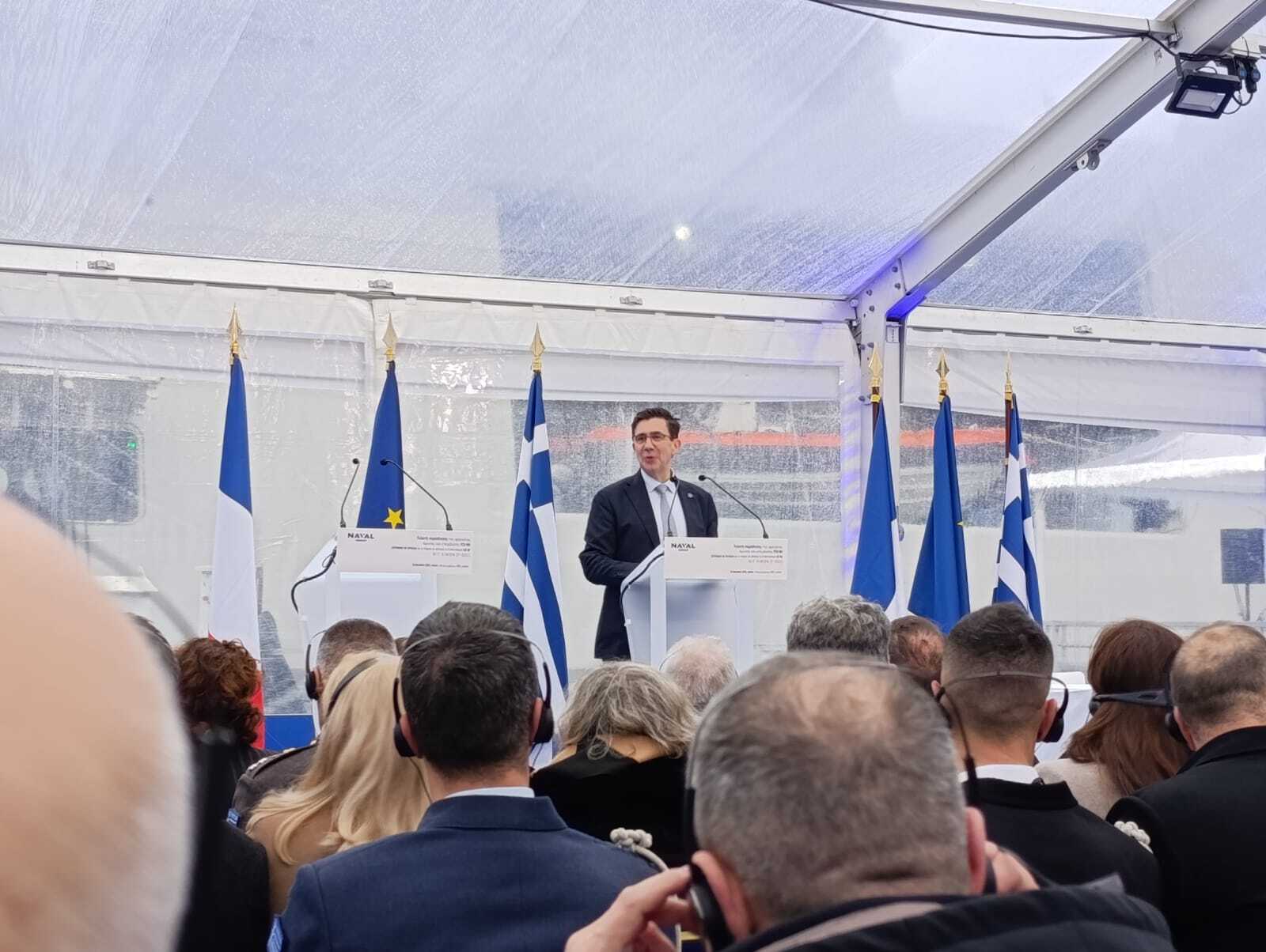 Η τελετή ονοματοδοσίας και ύψωσης της ελληνικής σημαίας λαμβάνει χώρα στο Λοριάν της Γαλλίας το μεσημέρι της Πέμπτης (18/12), παρουσία του υπουργού Εθνικής Άμυνας, Νίκου Δένδια, του υφυπουργού Εθνικής Άμυνας, Θανάση Δαβάκη, του Αρχηγού ΓΕΕΘΑ, στρατηγού Δημητρίου Χούπη, και του Αρχηγού ΓΕΝ, αντιναυάρχου Δημητρίου- Ελευθερίου Κατάρα.