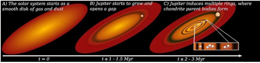 Η έκπληξη είναι πως οι πλανητοειδείς που σχηματίζονταν σε αυτές τις ζώνες δεν ήταν τα αρχικά δομικά στοιχεία του Ηλιακού Συστήματος. Αντ’αυτού, αντιπροσωπεύουν μια δεύτερη γενιά, που «γεννήθηκε» αργότερα στην ιστορία του Ηλιακού Συστήματος. Η «γένεσή» τους συμπίπτει με αυτήν πολλών χονδριτών, μιας «οικογένειας» βραχωδών μετεωριτών που διατηρούν πολύτιμα στοιχεία από την «παιδική ηλικία» του Ηλιακού Συστήματος.