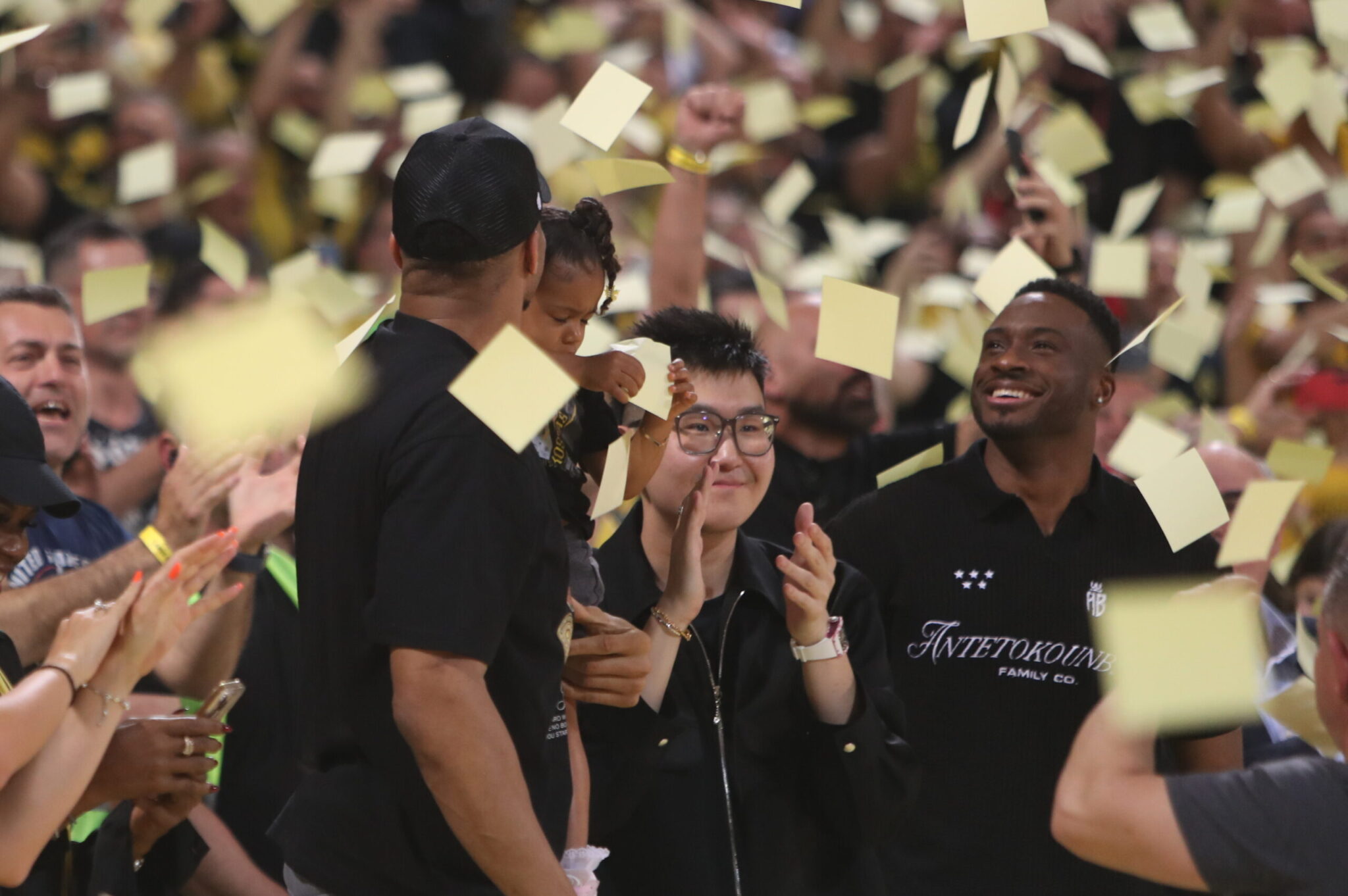 Ο Greek Freak ενθουσιάστηκε με την ατμόσφαιρα εντός του Nick Galis Hall, ενώ δέχτηκε με χαμόγελο το ευρηματικό σύνθημα των κιτρινόμαυρων φιλάθλων: «Ρε Γιάννη, ρε Γιάννη, ρε Γιάννη, άντε τελείωνε με το NBA, φτάνει.. Έλα εδώ καλό μου παλικάρι, για να σηκώσουμε πρωτάθλημα στον Άρη»…