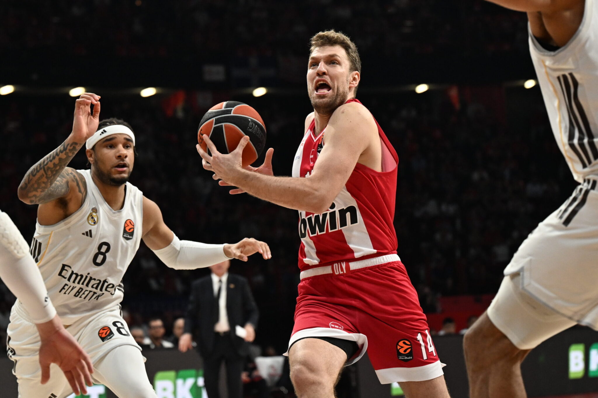 Ο Ολυμπιακός (24-12) είχε σε μεγάλη βραδιά τους Σάσα Βεζένκοφ (26π.) και Τάιλερ Ντόρσει (37π.), οι οποίοι οδήγησαν τους «ερυθρόλευκους» στη νίκη κόντρα στην Ρεάλ Μαδρίτης (22-14) και έμειναν μόνοι πρώτοι στην βαθμολογία της Euroleague μετά την ήττα της Φενερμπαχτσέ από την Χάποελ Τελ Αβίβ.