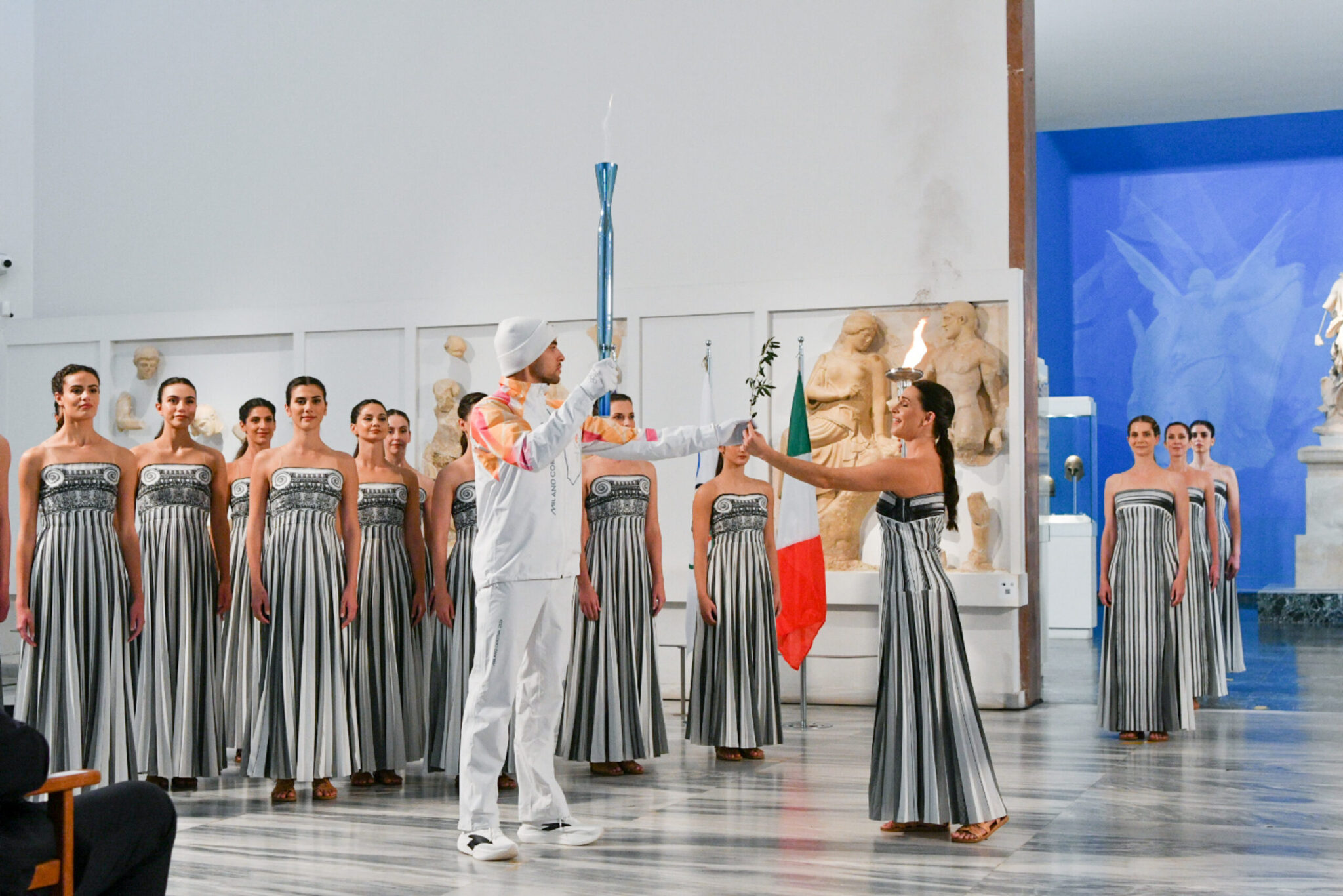 Στην Τελετή Αφής της Ολυμπιακής Φλόγας, παρέστησαν ο Πρόεδρος της Ελληνικής Δημοκρατίας, Κωνσταντίνος Τασούλας, ο επίτιμος πρόεδρος της ΔΟΕ, Τόμας Μπαχ, ο πρόεδρος της Ελληνικής Ολυμπιακής Επιτροπής, Ισίδωρος Κούβελος, ο πρόεδρος της Οργανωτικής Επιτροπής Milano Cortina, Τζιοβάνι Μαλαγκό, το μέλος της ΔΟΕ στην Ελλάδα, Σπύρος Καπράλος, o Aναπληρωτής Υπουργός Αθλητισμού Γιάννης Βρούτσης, ο δήμαρχος Αρχαίας Ολυμπίας, Αριστείδης Παναγιωτόπουλος και πολλοί άλλοι επίσημοι.