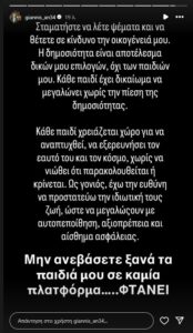 Ο σταρ των Μιλγουόκι Μπακς και της Εθνικής Ελλάδας εξέφρασε την αγανάκτησή του για τα πρόσφατα δημοσιεύματα, τονίζοντας ότι η δημοσιότητα είναι δική του επιλογή — όχι των παιδιών του. Παράλληλα, κάλεσε όλους να σεβαστούν την ιδιωτική ζωή και την ασφάλεια της οικογένειάς του.