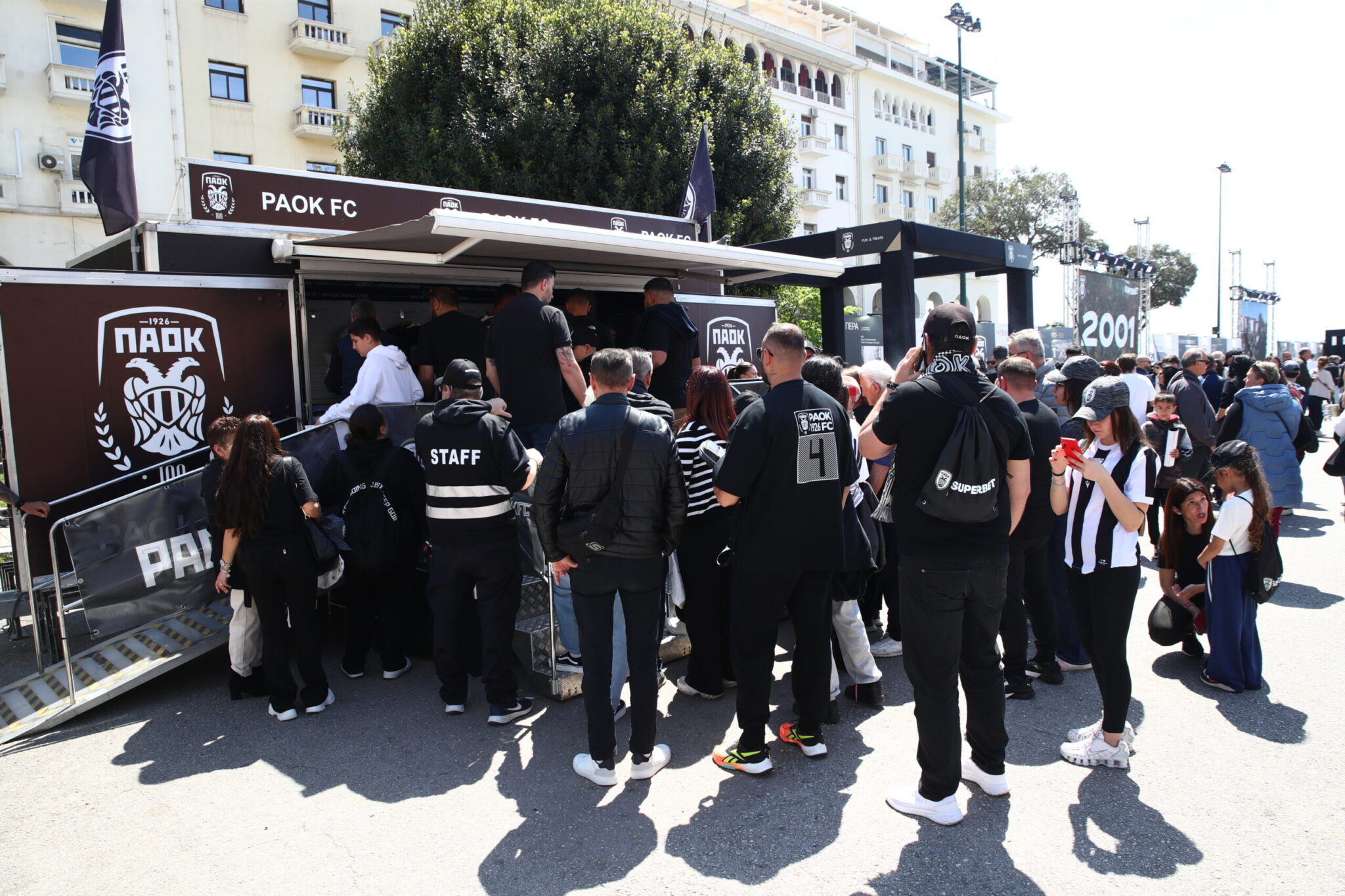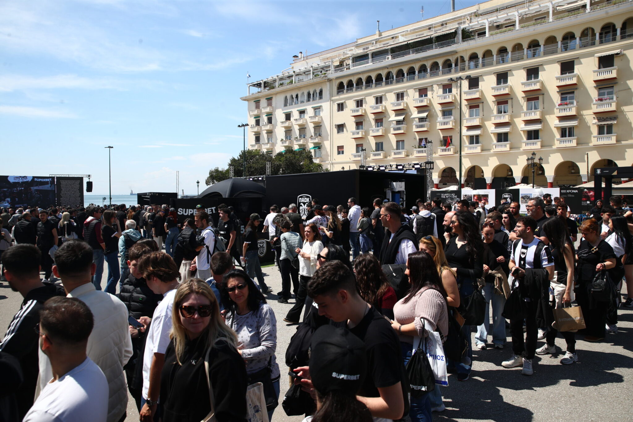 Ο ΠΑΟΚ συμπληρώνει 100 χρόνια ζωής την Δευτέρα (20/4) και το γιορτάζει με τη διοργάνωση αρκετών events στην Πλατεία Αριστοτέλους στη Θεσσαλονίκη, τα οποία προσέλκυσαν αρκετό κόσμο το πρωί της Δευτέρας (20/4).