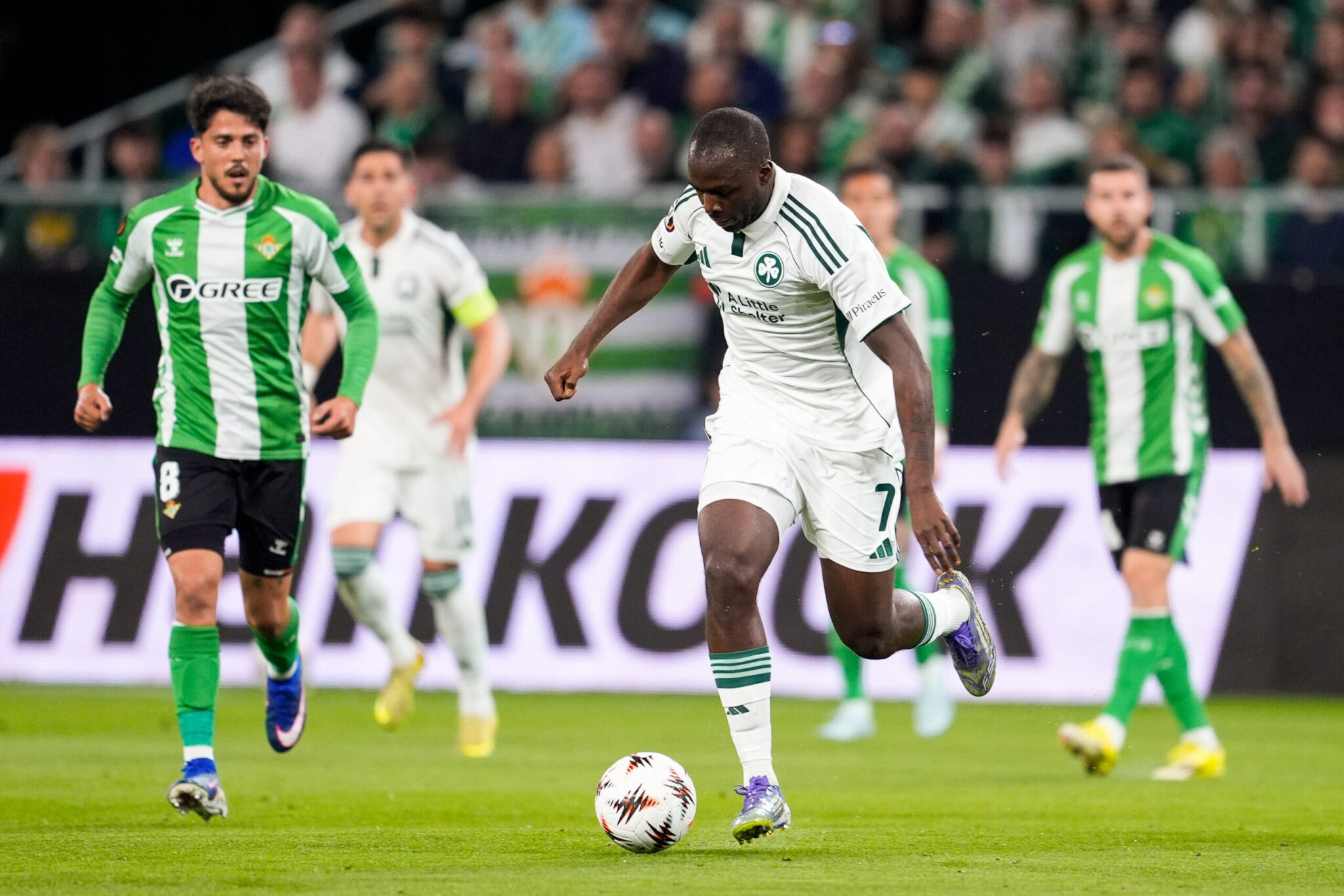 Στο 33′ ο Παναθηναίκός βγήκε γρήγορα στην αντεπίθεση και ο ιδιαίτερα δραστήριος Τεττέη έφτασε έξω από την περιοχή της Μπέτις, δοκιμάζοντας ένα σουτ που μπλόκαρε ο Πάου Λόπεθ.