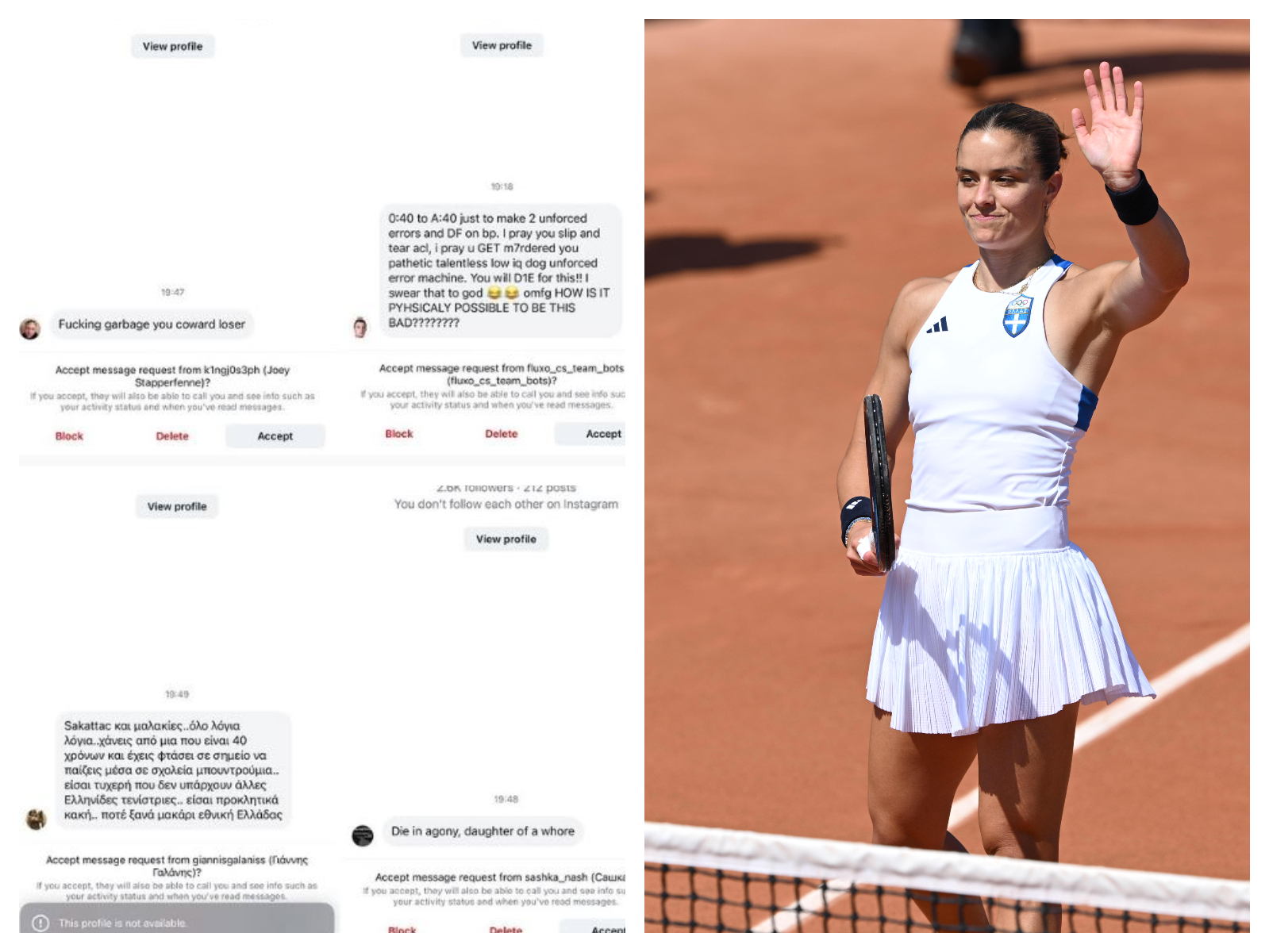 Η Μαρία Σάκκαρη ξέσπασε μέσω Instagram για τα μηνύματα που δέχεται από αγνώστους στα μέσα κοινωνικής δικτύωσης, σε μια χρονιά που δεν κατάφερε να πετύχει τους προσωπικούς της στόχους στο τένις και να φτάσει μακριά στις διοργανώσεις που συμμετείχε.