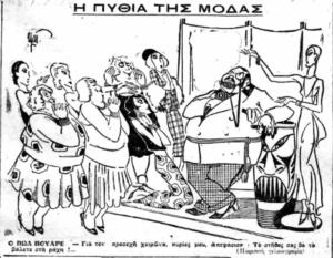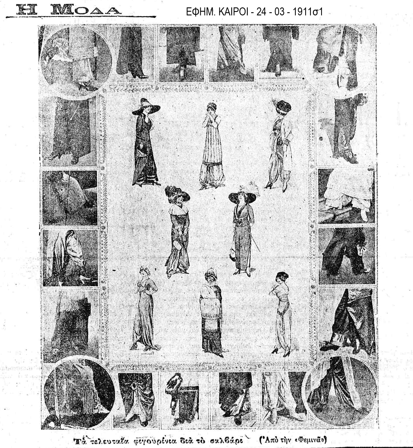 «Δύο κυρίες από εκείνες οι οποίες στα προγράμματα των καφωδείων ονομάζονται ελληνογαλλιστί «αρτίστες», φόρεσαν προχθές το βράδυ τα νεότευκτα σαλβάρια τους και ετόλμησαν να εξέλθουν πεζή».