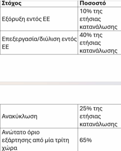 Το 2024, η ΕΕ θέσπισε τον νόμο για τις Κρίσιμες Ορυκτές Πρώτες Ύλες (CRMA), θέτοντας τους εξής μη δεσμευτικούς στόχους για το 2030:
