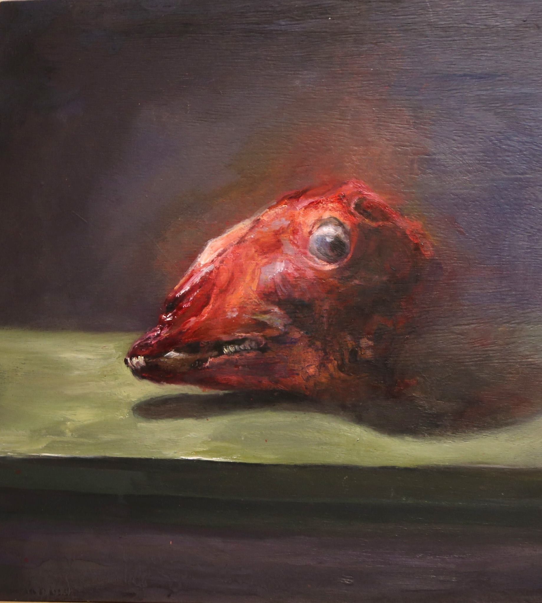 Ο τίτλος του έργου της κ. Αντύπα είναι «Κεφαλάκι σφαχτού» και όπως η ίδια είχε την καλοσύνη και την ευγένεια να μου αφηγηθεί «Το συγκεκριμένο έργο γεννήθηκε από μια προσωπική, υπαρξιακή ανάγκη να αγγίξω τη ματαιότητα και τη σκληρότητα του θανάτου. Δεν δημιουργήθηκε με συγκεκριμένο πολιτικό πλαίσιο, ωστόσο συνομιλεί με την ανθρώπινη βία και την ευαλωτότητα της ζωής».