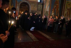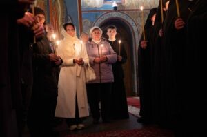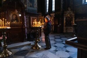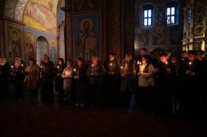 Από την Κυριακή των Βαίων έως την Κυριακή του Πάσχα, οι ναοί της πόλης γεμίζουν, οι Ορθόδοξοι χριστιανοί κάθε ηλικίας , παιδιά,ηλικιωμένοι ,οικογένειες,σώματα που επιμένουν να βρίσκονται μαζί, έρχονται να παρακολουθήσουν τις λειτουργίες τις μεγάλης εβδομάδας που γίνονται στο κέντρο του Κιέβου στους ορθόδοξους ναούς. Οι ορθόδοξοι ναοί δεν λειτουργούν μόνο ως χώροι λατρείας. Είναι τόποι ιστορικής συνέχειας και συλλογικής μνήμης.