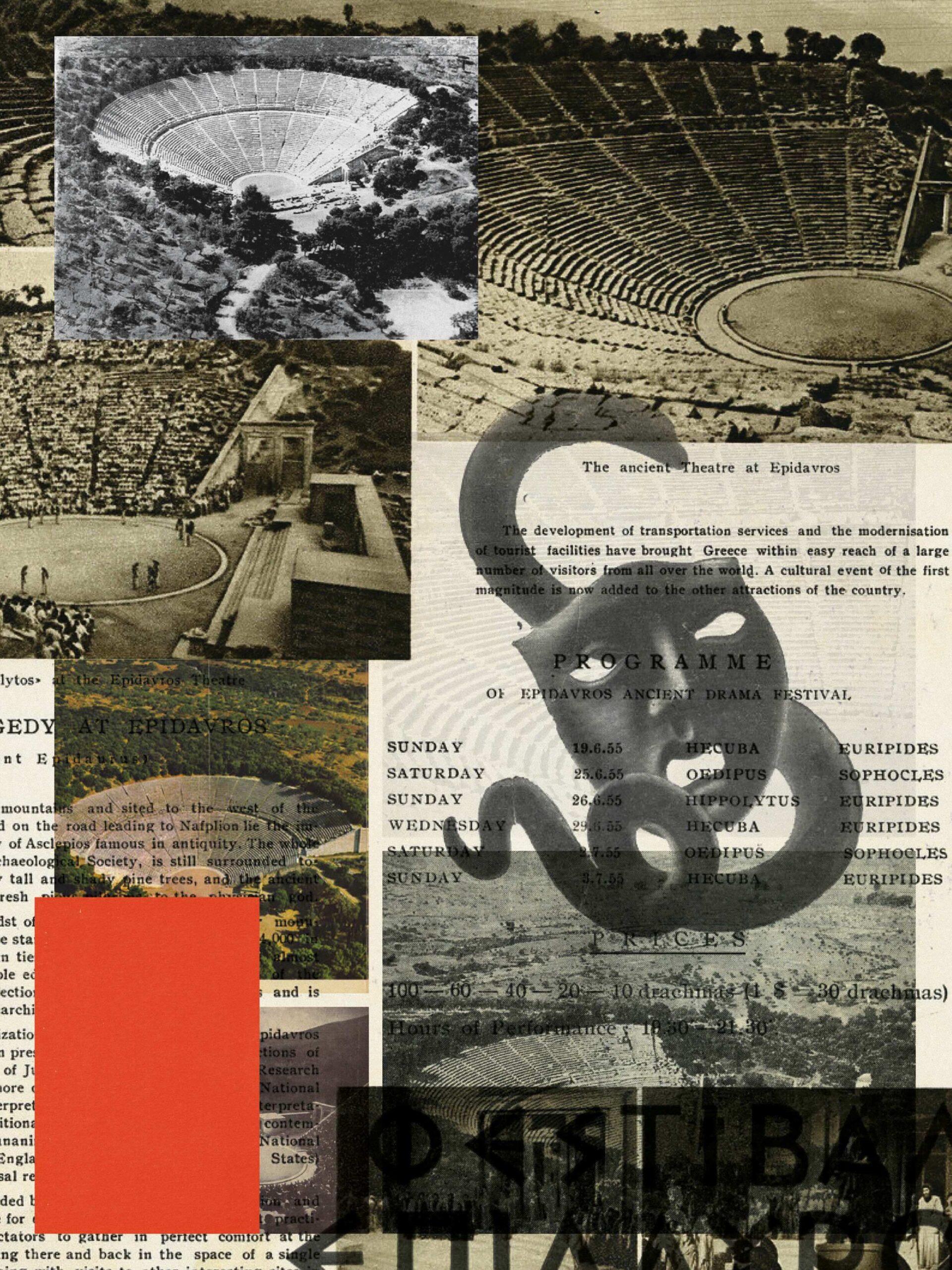 Το υλικό, που αντλήθηκε από το Αρχείο του Φεστιβάλ Αθηνών Επιδαύρου, συμπληρώνεται από τεκμήρια που παραχωρήθηκαν από πλήθος φορέων (Εθνικό Θέατρο, ΚΘΒΕ, ΜΙΕΤ/ΕΛΙΑ, Αρχείο ΕΡΤ, Μουσείο Μπενάκη/Φωτογραφικά Αρχεία, Αρχείο Δημήτρη Ροντήρη του Δήμου Πειραιά, Αρχείο Αμφι – Θεάτρου Σπύρου Α. Ευαγγελάτου, Ίδρυμα Γιάννη Τσαρούχη, Μουσείο Αλέκου Φασιανού, Σχολή Βακαλό, Αρχείο Γιώργου Πάτσα/Τμήμα Θεατρικών Σπουδών ΕΚΠΑ), καλλιτεχνών και συνεργατών του Οργανισμού.