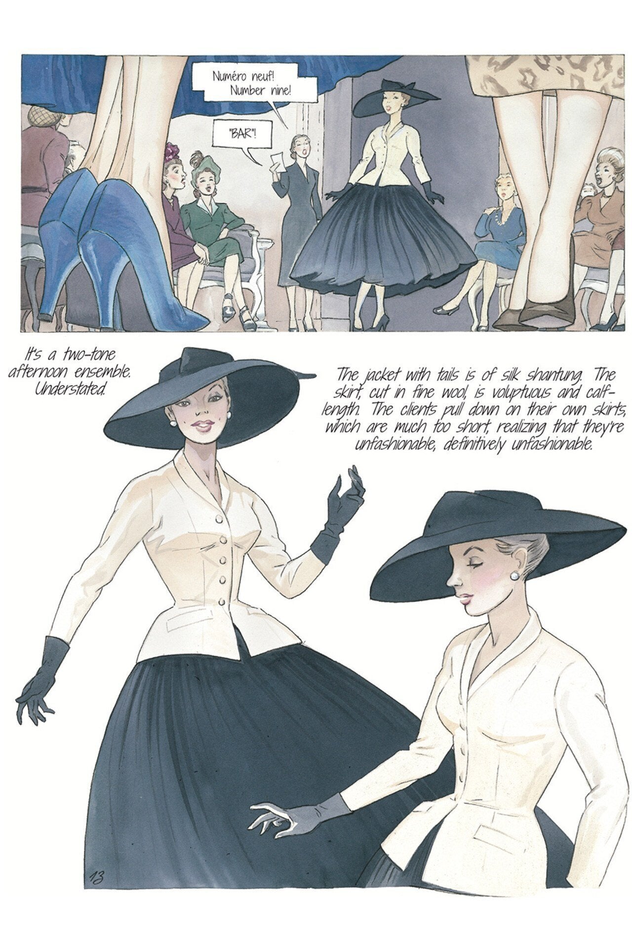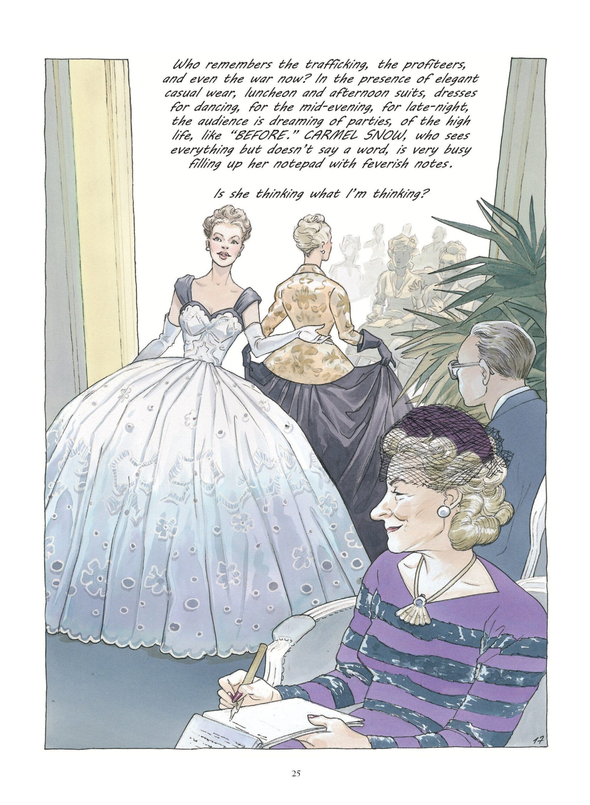 Στο «Girl in Dior» μεταφέρεται μέσα από υπέροχα σκίτσα η άνοδος του Κριστιάν Ντιόρ στη δόξα, καθώς είναι περικυκλωμένος από θαυμαστές και γυναίκες ντυμένες με φορέματα από τούλι και τονισμένη μέση.