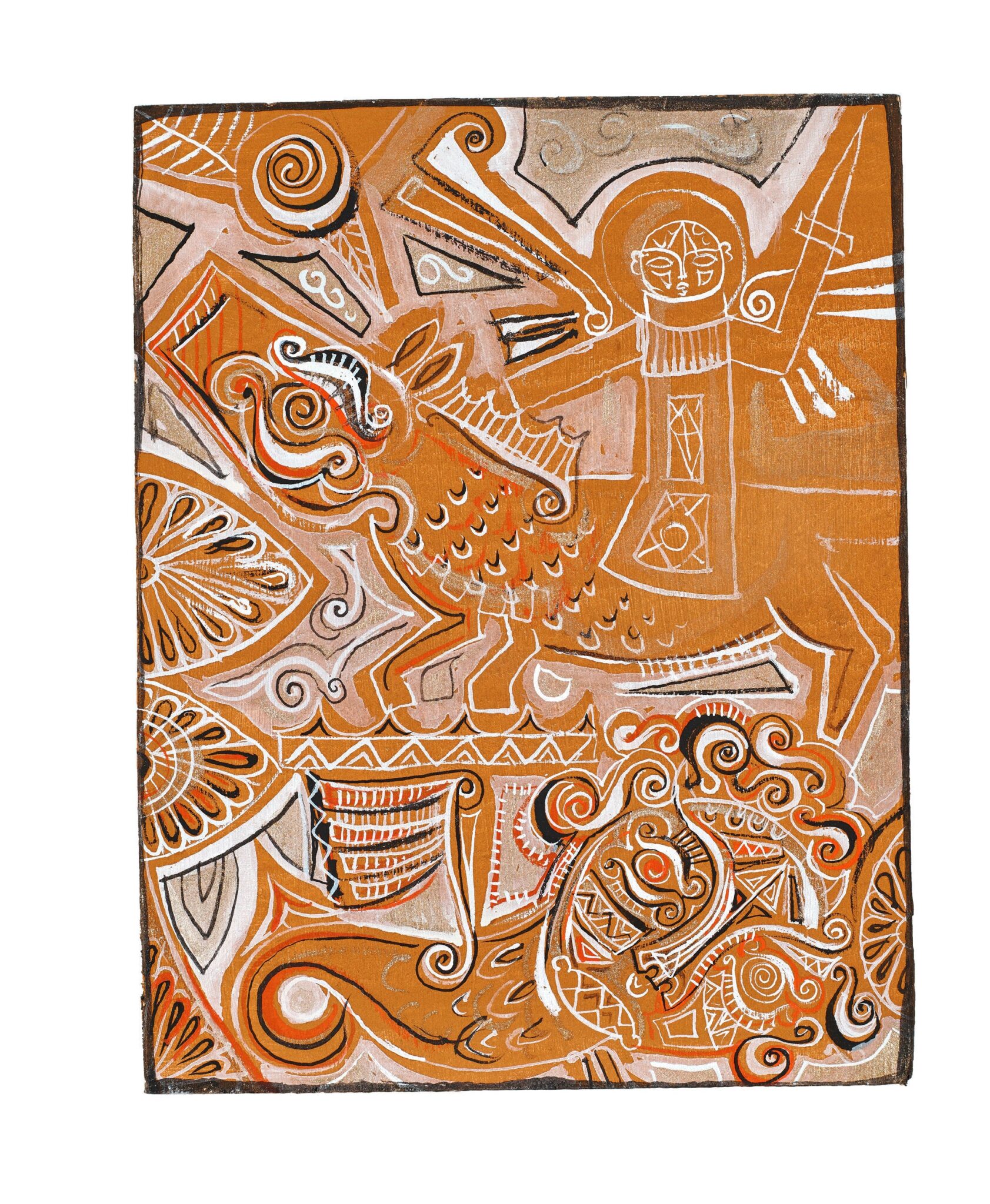 Η Τήνος, πέρα από τη βεβαρημένη κάπως, θρησκευτικo-φολκλορική ατμόσφαιρα του λιμανιού, είναι μια γιορτή για το βλέμμα. Και η ενδοχώρα της με τους «χειροποίητους» περιστεριώνες, τις αριστοτεχνικές ξερολιθιές και τα σκαρφαλωμένα ξωκλήσια σε απάτητες κορυφές, είναι τόπος ψυχικής ανάτασης. Σε ένα τέτοιο μέρος, μια παλιά σιταποθήκη στον ανέγγιχτο Τριαντάρο, ο τηνιακός δημιουργός στήνει μια εικονογραφική ιστορία ανάμεσα στο καλό και το κακό. Αγγελόμορφες φιγούρες σε πάλη ενσαρκώνουν τις σκοτεινές και φωτεινές πλευρές του ανθρώπου. Το καλό και το κακό, όμως, δεν παρουσιάζονται με «χολιγουντιανό» τρόπο, όπως ίσως το χουμε στο νου μας.