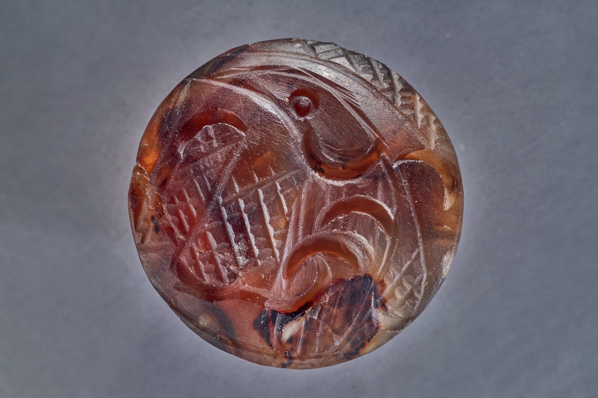 Θαλάσσια βότσαλα μεγαλύτερου μεγέθους, που συμβολίζουν την θαλάσσια υπόσταση της θεότητας και τη χρήση τους γνωρίζουμε από την Κνωσό, βρέθηκαν λίγο μακρύτερα. Τα βότσαλα αυτά συλλέχθηκαν διασπαρμένα κοντά σε έναν εξαίρετο σφραγιδόλιθο από αχάτη με παράσταση ψαριού, που βρέθηκε στον διπλανό χώρο. Το ιερό, όπως συμβαίνει συχνά, δεν χρησιμοποιήθηκε ξανά στα μινωικά χρόνια.