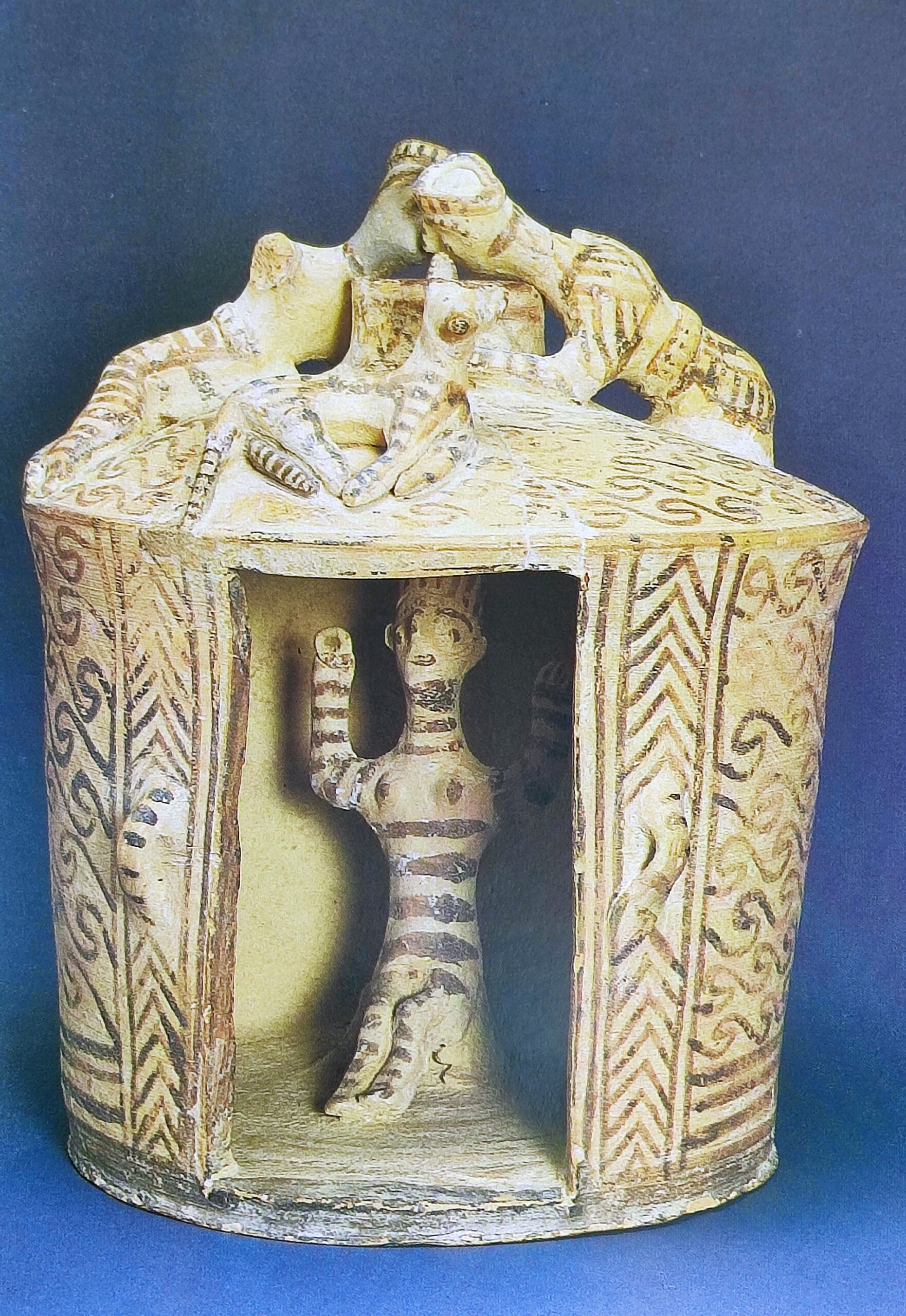 Στο ιερό έχουν βρεθεί ακόμη, τμήματα από μικροσκοπικά δείγματα μεγάλων αγγείων, όπως π.χ. από χύτρες, που είναι αφιερωματικά. Ένα ακόμη τελετουργικό εύρημα ήταν ένας θαλάσσιος τρίτωνας, που αποτελούσε όργανο επίκλησης της θεότητας, όπως γνωρίζουμε από σφραγίδα που έχει βρεθεί στο Ιδαίον Άντρο.