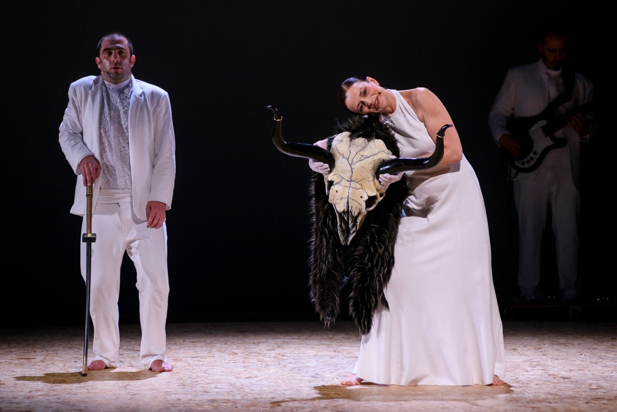 Β. Κ.: Πιστεύω ότι με την μουσική δεν προσπαθούμε να αναδείξουμε κάποιο συγκεκριμένο στοιχείο αλλά συνολικά την παράσταση, το κείμενο μα και την σκηνοθεσία της.