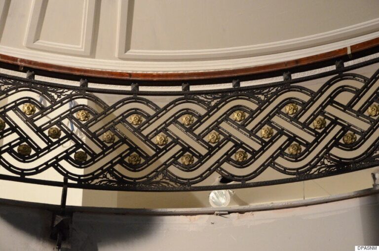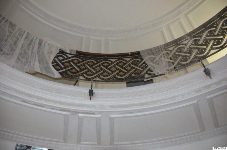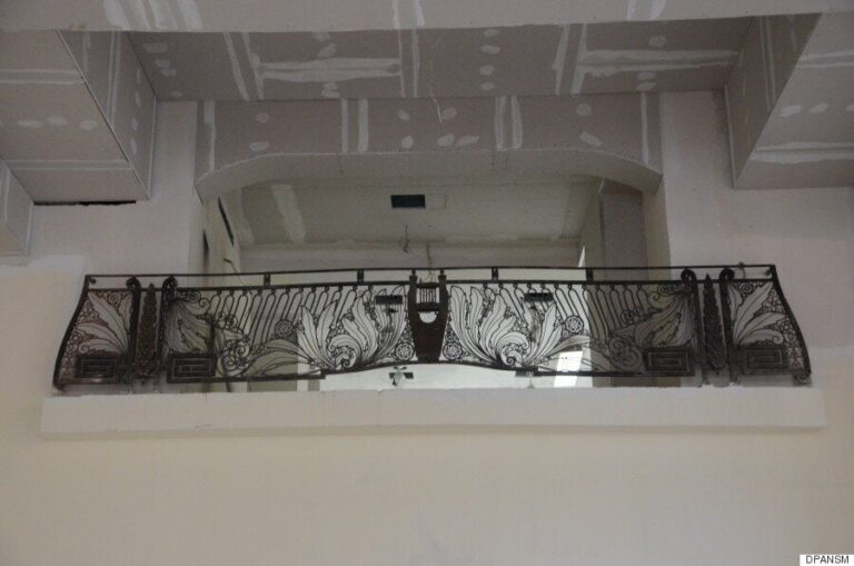 «Ότι μπορούσαμε να σώσουμε, το σώσαμε», μου λέει η κ. Σπυριδάκη. «Αποκαταστήσαμε τον διάκοσμο του κτιρίου- συντηρήσαμε ότι ήταν εφικτό και προχωρήσαμε σε πιστή αναπαραγωγή των τμημάτων και στοιχείων που έλειπαν ή είχαν καταστραφεί. Σε μια γωνιά μου δείχνει ένα τμήμα από το μεταλλικό κάγκελο του ανελκυστήρα που έχει αφαιρεθεί. «Έτσι το παραλαμβάνουμε- κομμένο, στραβωμένο και αρχίζει ο καθαρισμός του. Κάποιες εργασίες αποκατάστασης γίνονται επιτόπου, ενώ κάποια άλλα κομμάτια του διακόσμου μεταφέρονται στα εργαστήρια των τεχνιτών όπου αποκαθίστανται και επανατοποθετούνται. Ο λίθινος, ο μεταλλικός και ο γύψινος διάκοσμος αποκαταστάθηκαν κατά το μεγαλύτερο μέρος τους μέσα στο «Ακροπόλ», το κάθε τμήμα από αντίστοιχα εξειδικευμένους επιβλέποντες της Διεύθυνσης Συντήρησης του ΥΠ.ΠΟ.», συνεχίζει η ίδια. Σε κάποια μεταλλικά στοιχεία που έχει συντηρηθεί μόνο η μία τους όψη, παρατηρώ σε αυτήν που μένει να συντηρηθεί την πατίνα του χρόνου έναντι της ανακαινισμένης στιλπνότητας της άλλης, «καινούργιας» πλευράς.