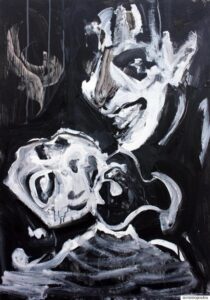 “Στο πλαίσιο αυτού του διαλόγου των εικαστικών τεχνών με τον κινηματογράφο, γινόμαστε μάρτυρες και κοινωνοί θαρραλέων εικαστικών δράσεων που αποτολμούν το μέγιστο μέσω του λίγου. Όπως και το μαυρόασπρο φιλμ μας μιλά για τις δικές του ρέουσες αλήθειες, κι αυτό θέλοντας να ξεχάσει το περιττό, το συχνά εντυπωσιακό και πολύχρωμα ανούσιο, το επιφανειακά λαμπερό. Η ζωγραφική και ο κινηματογράφος, μαυρόασπροι συνοδοιπόροι μιας «άλλης» πολυχρωμίας, συναντώνται, συνομιλούν και αλληλο-επηρεάζονται με όρους ισότιμους και ανοιχτούς σε διαρκώς νέες αισθητικές προσμίξεις.