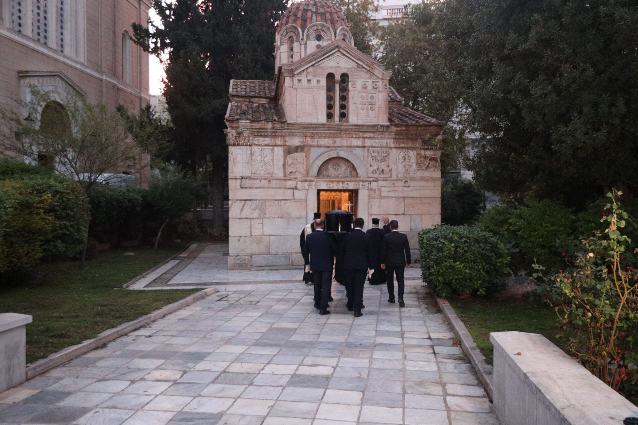 Στο παρεκκλήσι της Μητρόπολης Αθηνών βρίσκεται από νωρίς το πρωί του Σαββάτου η σορός του Διονύση Σαββόπουλου, όπου και θα παραμείνει έως τις 12:30 για το λαϊκό προσκύνημα.