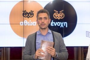 Ο κ. Αλέξανδρος Παπανδρέου, ιδρυτής του οργανισμού Χαρισμάθεια, στο πλαίσιο της συνέντευξης τύπου οργάνωσε μια προσομοίωση για το κοινό της εκπαιδευτικής δράσης «Μικροί Ένορκοι».