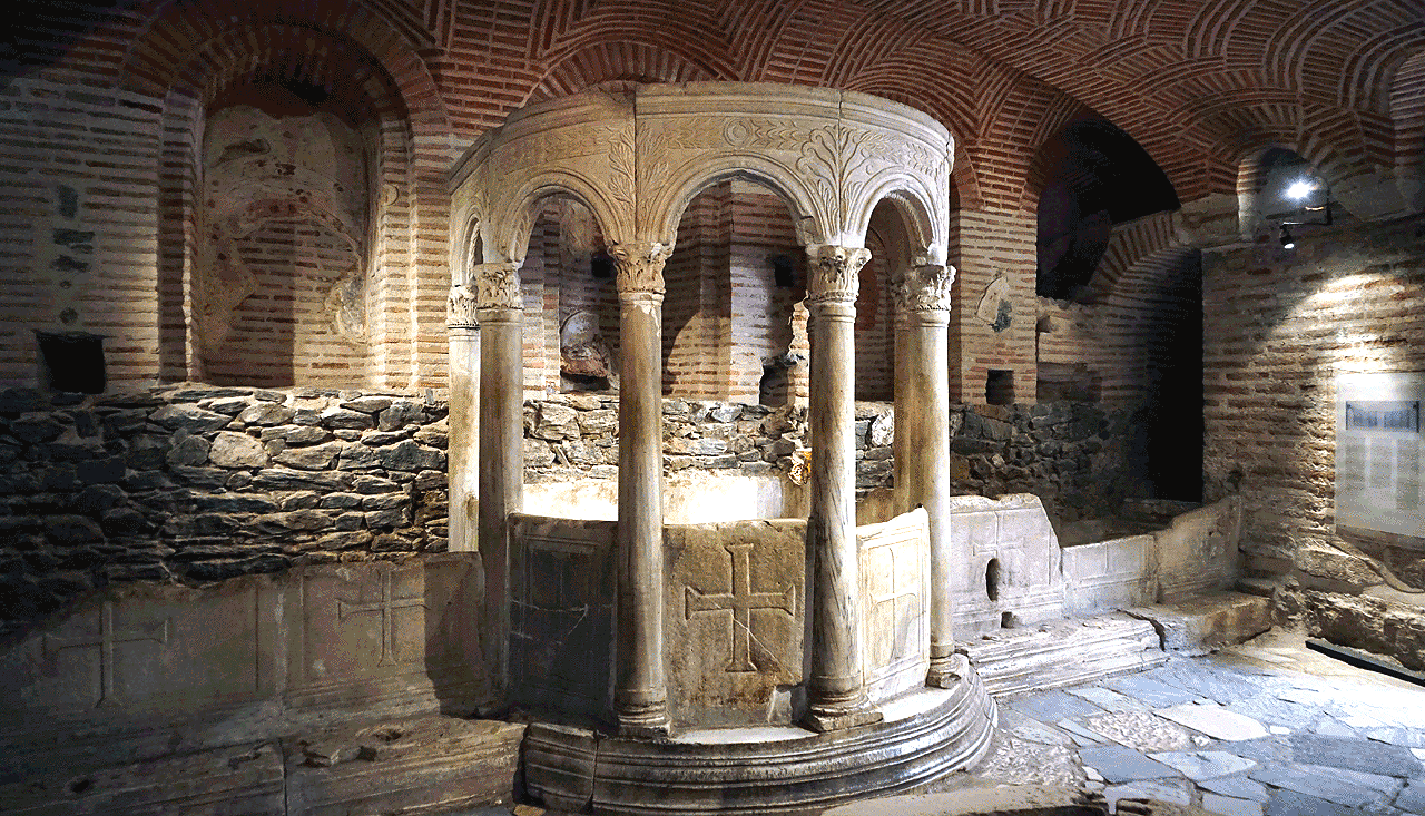 Ο Ναός του Αγίου Δημητρίου έχει χαρακτηριστεί ιστορικό διατηρητέο μνημείο. Ο εκθεσιακός χώρος της Κρύπτης του Ναού διαμορφώθηκε το 1985. Η έκθεση αποτελείται από εννέα χώρους που διατάσσονται γύρω από την κρήνη και οργανώνεται, ανά θεματική ενότητα, με βάση την υφιστάμενη διαμερισματοποίηση της Κρύπτης.