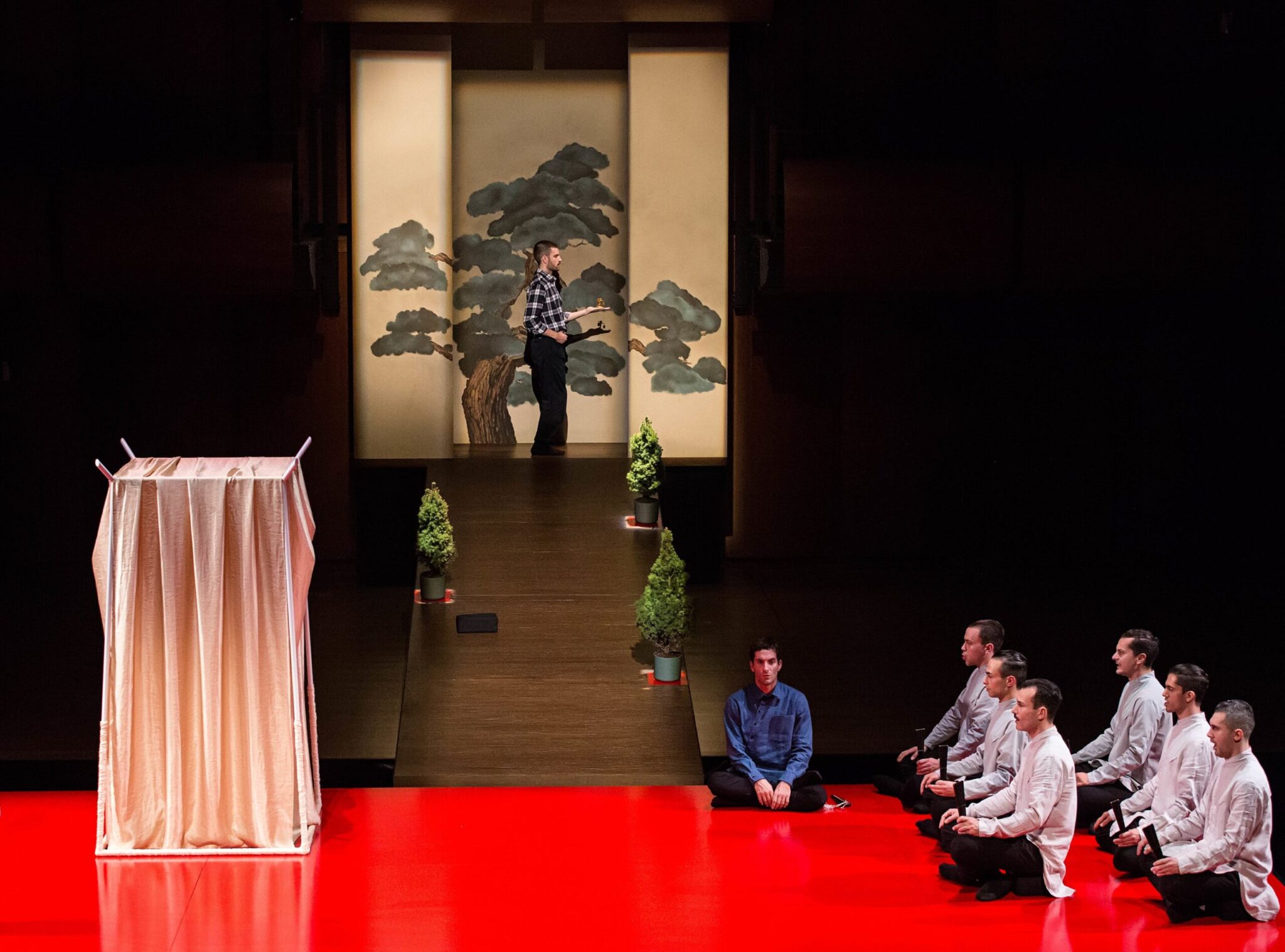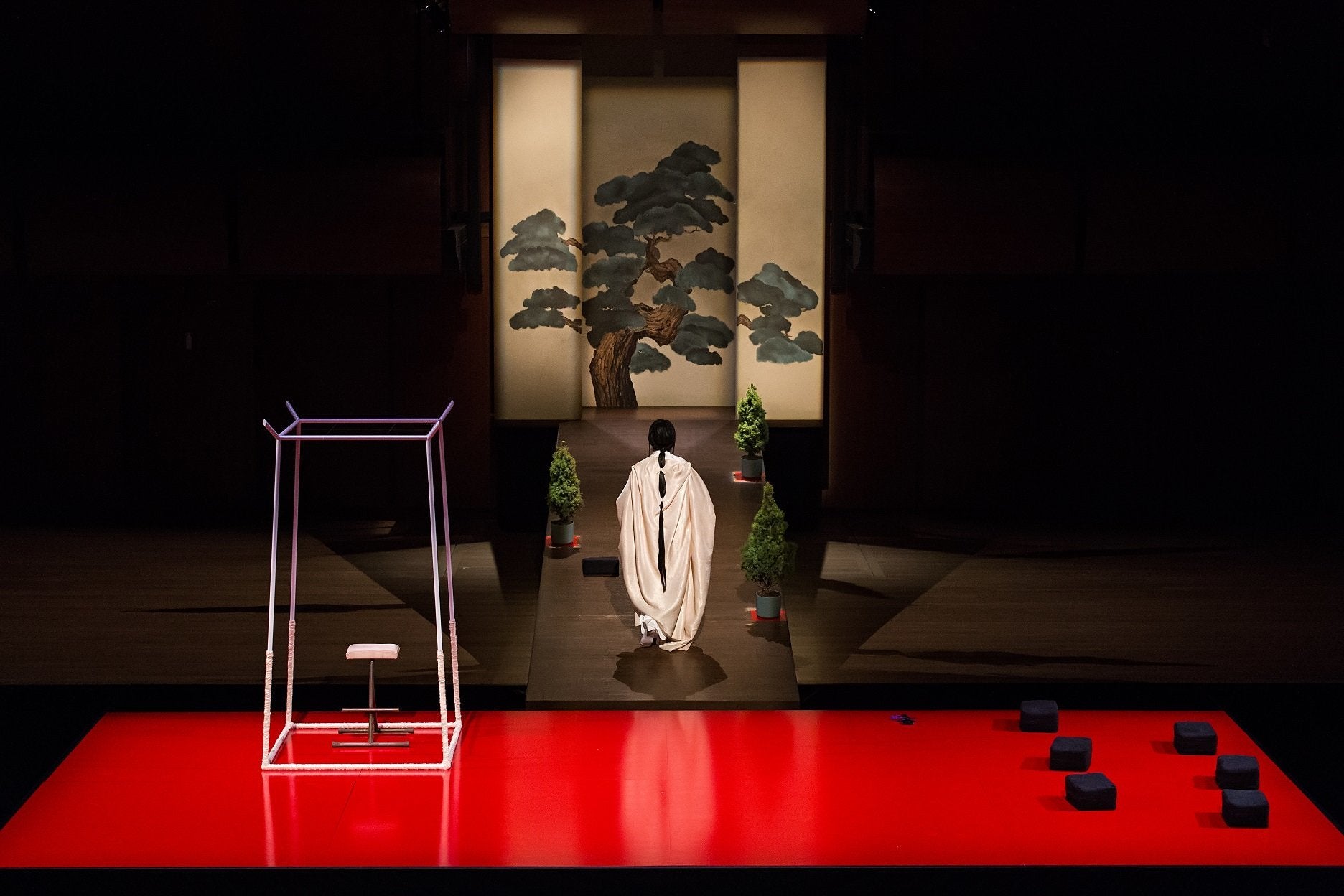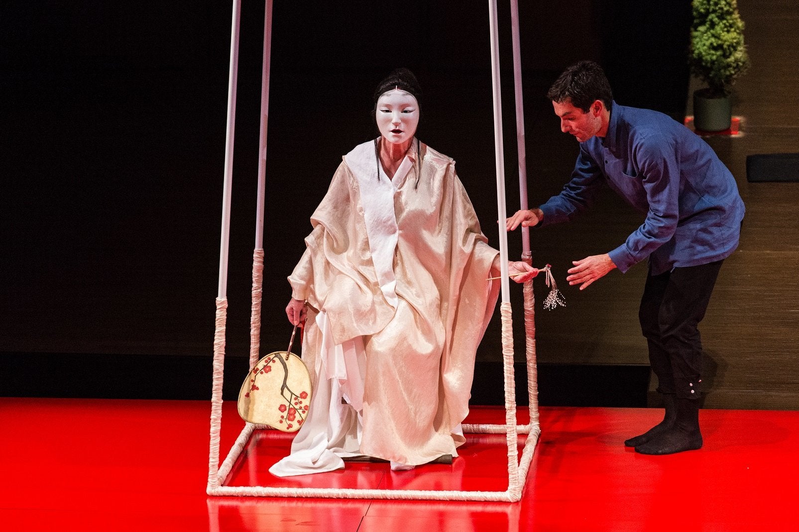 Ο Μιχαήλ Μαρμαρινός πηγαίνει για πρώτη φορά στην Εναλλακτική Σκηνή της ΕΛΣ και, αντί να επιλέξει μια συμβατική όπερα ή έστω την μετατροπή ενός συμβατικού θεατρικού έργου σε τέτοια όπως θα έκαναν οι περισσότεροι άλλοι, προτιμά να δώσει την δική του ανάγνωση για το πως ένας αρχαίος ιαπωνικός μύθος εκφράστηκε διαμέσου του παραδοσιακού θεάτρου Νο της ιδίας χώρας και τον Φίλιππο Τσαλαχούρη για να γράψει την μουσική της.