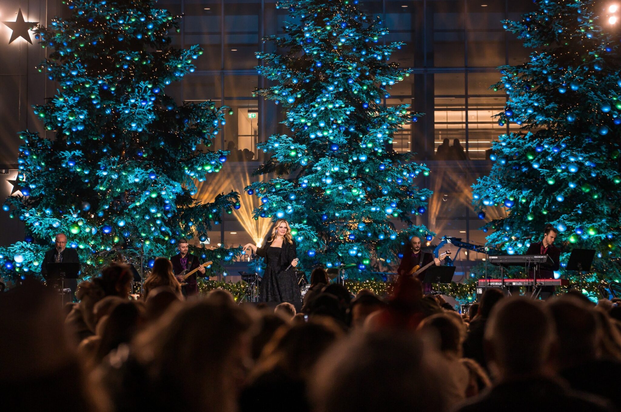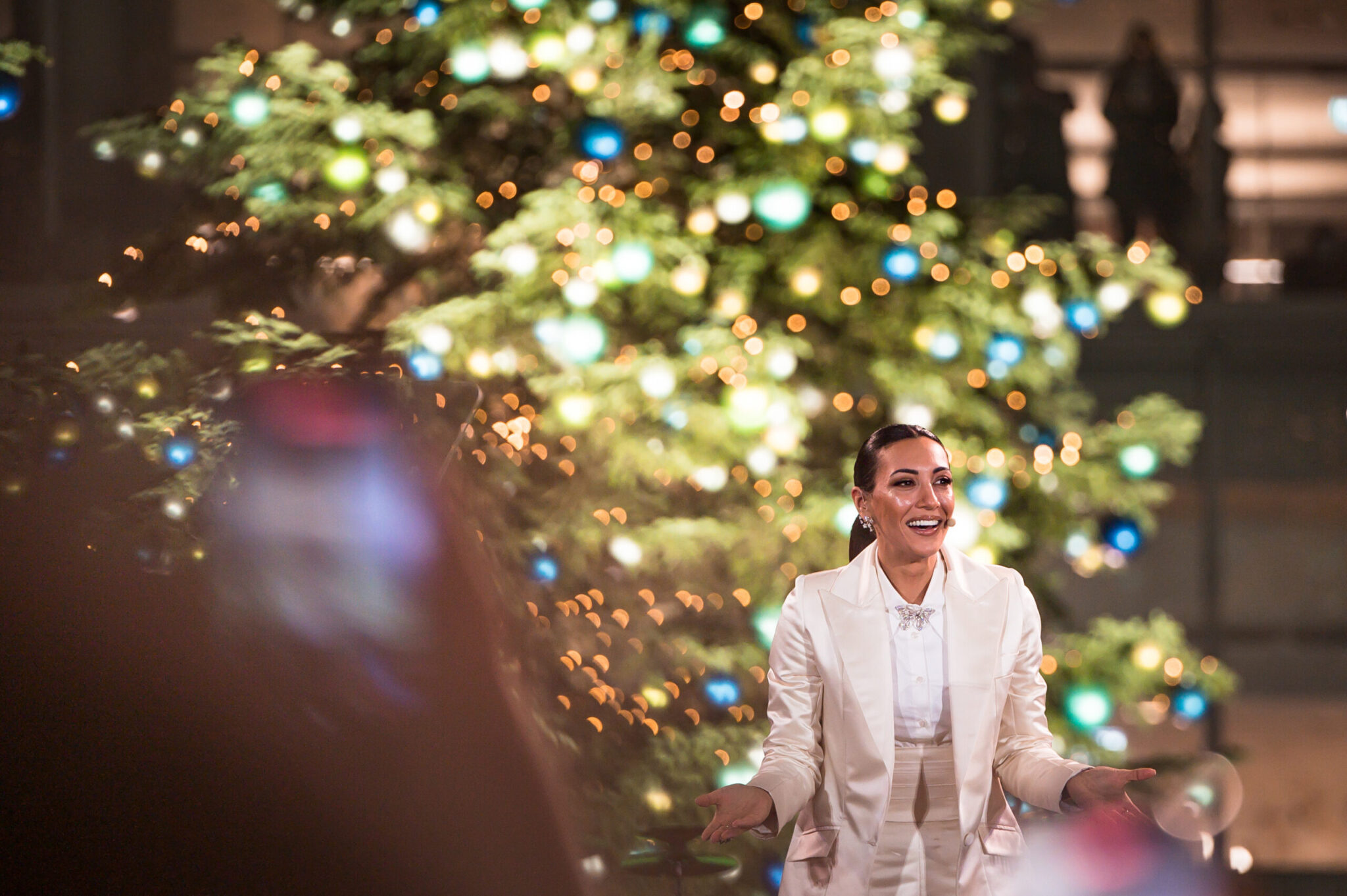 Όλα αυτά μαζί συνέθεσαν ένα μαγευτικό χριστουγεννιάτικο σκηνικό πάνω στο οποίο στήθηκε μια μεγάλη γιορτή στην Αγορά του ΚΠΙΣΝ με οικοδέσποινα την ηθοποιό Ευγενία Σαμαρά. Η βραδιά ξεκίνησε με τους Loop Quartet, ένα φωνητικό σύνολο που δημιουργεί μουσική αποκλειστικά με τη δύναμη της ανθρώπινης φωνής. Κάλαντα, swing classics και pop επιτυχίες, από το «Carol of the Bells» και το «Rocking Around the Christmas Tree» στο «All I want for Christmas», μετατράπηκαν σε σύγχρονες πολυφωνικές εμπειρίες και ενθουσίασαν το κοινό.