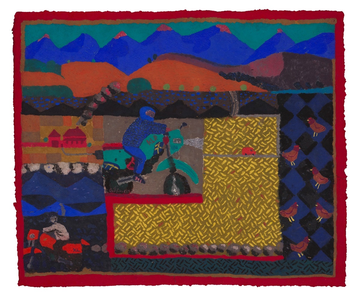 Ο ζωγράφος Γιάννης Ευθυμίου, ο οποίος ξεχώρισε για την ιδιαίτερη χρήση του χαρτοπολτού -ενός υλικού που προκύπτει από χαρτί λιωμένο στο νερό και κατεργασμένο σε μάζα- παρουσιάζει στην Γκαλερί Σκουφά την έκθεση με τίτλο «Η κορυφή είναι πίσω απ’ το βουνό».