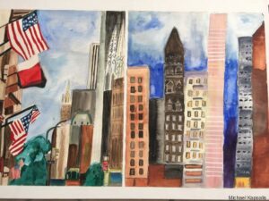Το αιώνιο μπλε της θάλασσας που τόσο αγάπησε, κυριαρχεί στα λουσμένα με φως νησιώτικα τοπία του Μανχάταν .