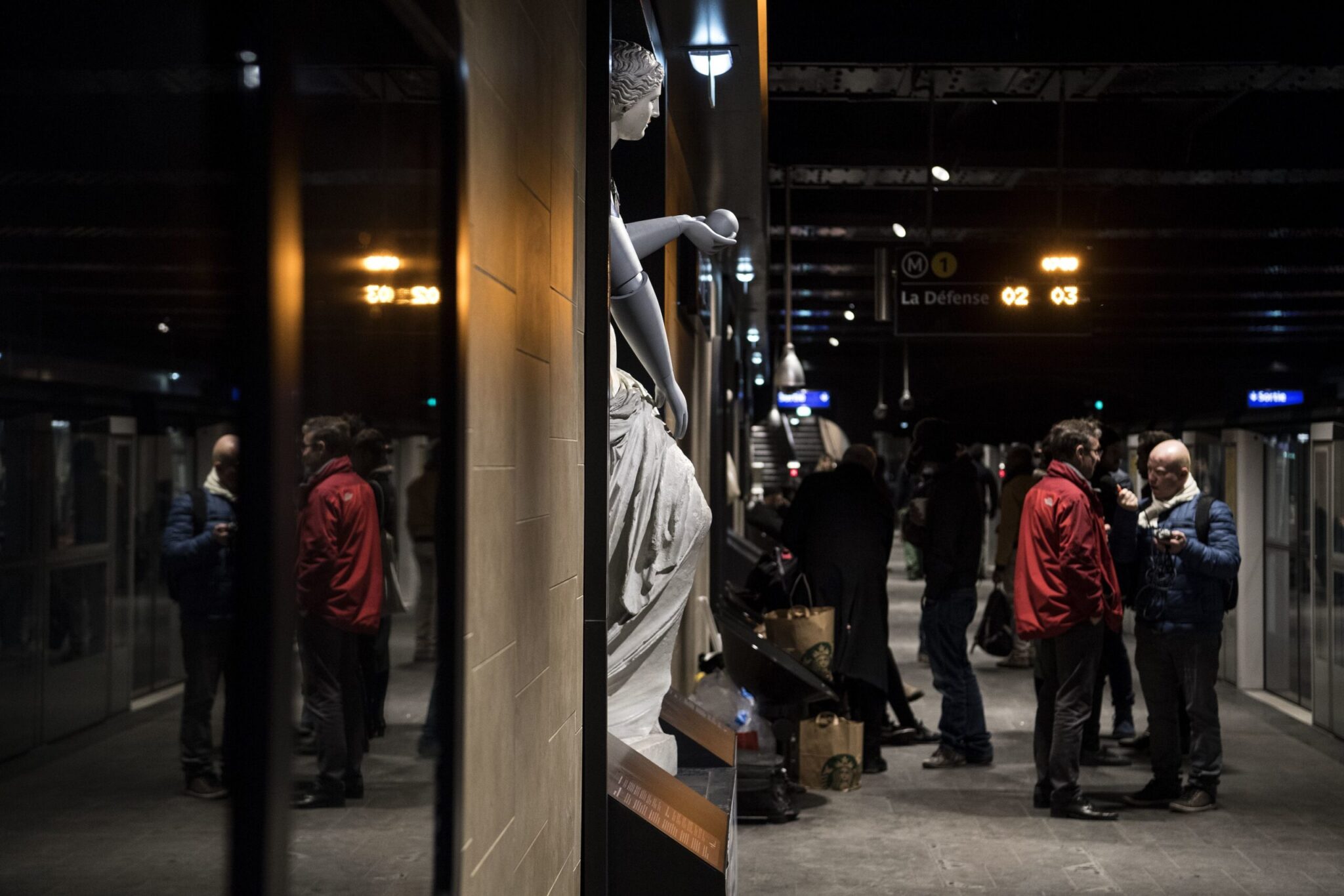 Η διεθνής μη κυβερνητική οργάνωση εξόπλισε το πρωί μέσα σε σταθμό του παρισινού μετρό αυτή η αναπαραγωγή του αγάλματος που εκτίθεται στο μουσείο του Λούβρου. Και αναμένεται να συνεχίσει την ”παρέμβασή” της σε άλλα έργα που βρίσκονται στα πάρκα της πρωτεύουσας.
