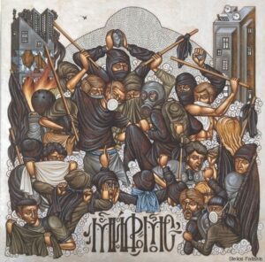 «Οργή και μίσος», μικτή τεχνική σε ξύλο, 50×50 εκ., 2017