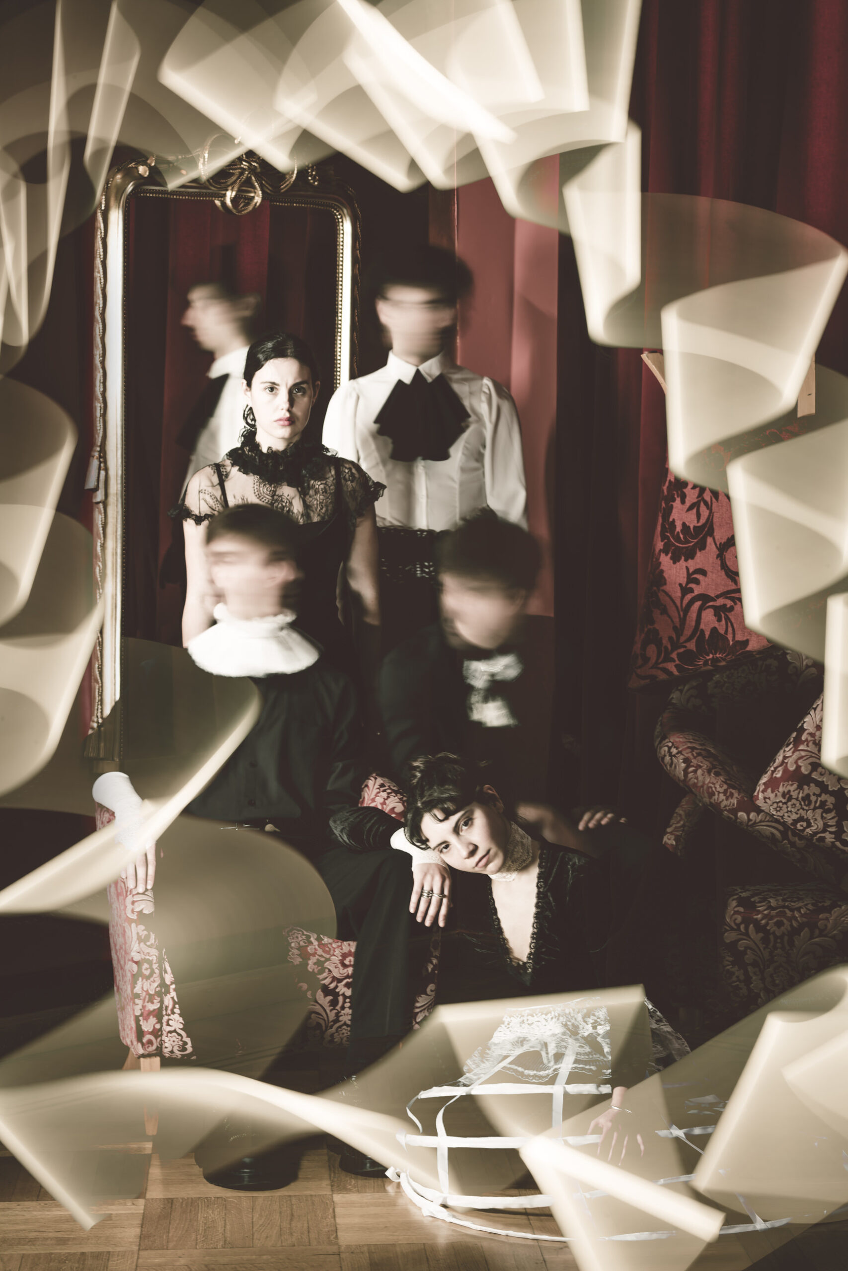 Το Φουαγιέ του Θεάτρου Ολύμπια, ολοσκότεινο, γίνεται το σαλόνι της Βίλας Ντιοντάτι, οι θεατές βρίσκονται ανάμεσα στους ηθοποιούς, έναν αόρατο αφηγητή, έναν μυστηριώδη πιανίστα και μία εικαστική εγκατάσταση από πίνακες και γλυπτά που φιλοτεχνήθηκαν με αφορμή την ιστορία των ηρώων.