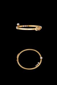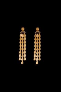 Τα κομμάτια της συλλογής δεν μπορούσαν φυσικά να μην είναι εμπνευσμένα από την Ελλάδα, με αναφορές στην Ελληνική μυθολογία και το αρχιτεκτονικό τοπίο της χώρας μας. Οι γραμμές τους είναι απλές και καθαρές, αλλά όπως πάντα, οι λεπτομέρειες κάνουν τη διαφορά. Χρυσές άρπες, πέρλες και το λιοντάρι της Νεμέας κοσμούν τις υπέροχες δημιουργίες. Στη συλλογή υπάρχουν σκουλαρίκια, βραχιόλια για το χέρι ή το μπράτσο, κρεμαστά κολιέ και δαχτυλίδια, όλα φτιαγμένα από Ελληνικό χρυσό.