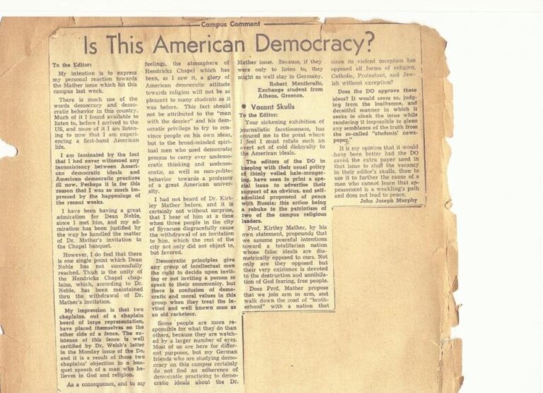 Με την συμφωνία των συμφοιτητών μου έστειλα ένα αντιμακαρθικό άρθρο στην εφημερίδα Daily Orange με τίτλο «Aυτή είναι η Αμερικανική Δημοκρατία;». Το αποτέλεσμα ήταν να ζητηθεί η αφαίρεση της υποτροφίας μου και να ανοιχτεί ο πρώτος μου φάκελος στο FBI!