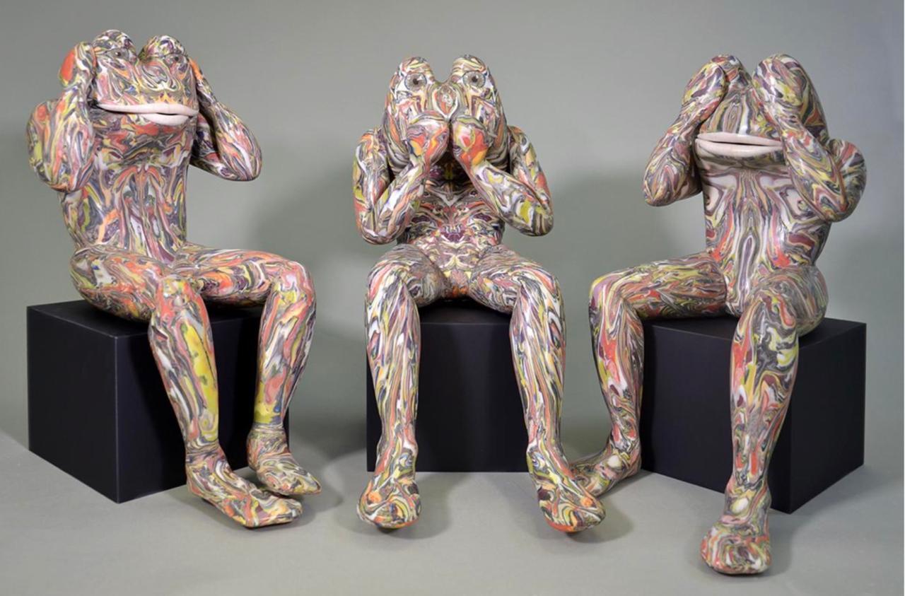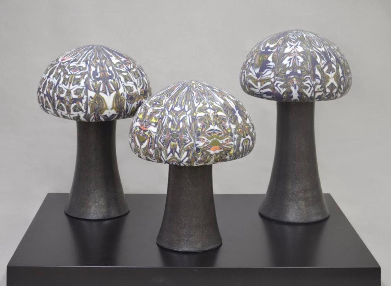 Δουλεύοντας με λευκή πορσελάνη υψηλής θερμοκρασίας, εμπλουτισμένη με οργανικές χρωστικές, ενσωματώνει το χρώμα μέσα στη μάζα του πηλού. Κατά τη διάρκεια της όπτησης, η έντονη θερμότητα του κλιβάνου ενεργοποιεί μια διαδικασία εσωτερικής μετακίνησης των χρωστικών, γεννώντας σύνθετους χρωματικούς σχηματισμούς που μοιάζουν να αιωρούνται μέσα στο ίδιο το υλικό. Έτσι, η πορσελάνη μετατρέπεται σε μια φωτεινή επιφάνεια όπου το χρώμα δεν απλώνεται εξωτερικά, αλλά αναδύεται εκ των έσω.
