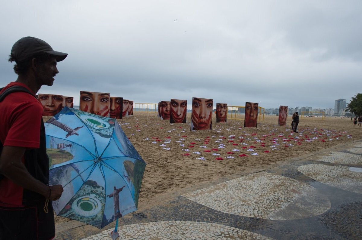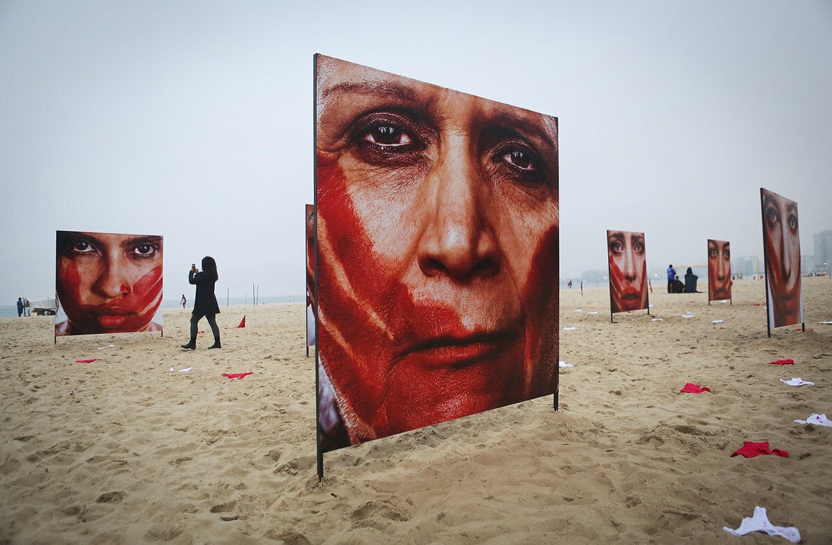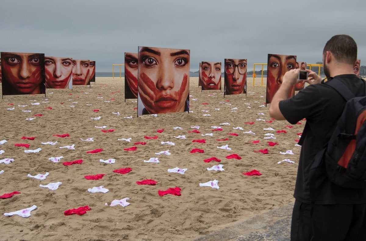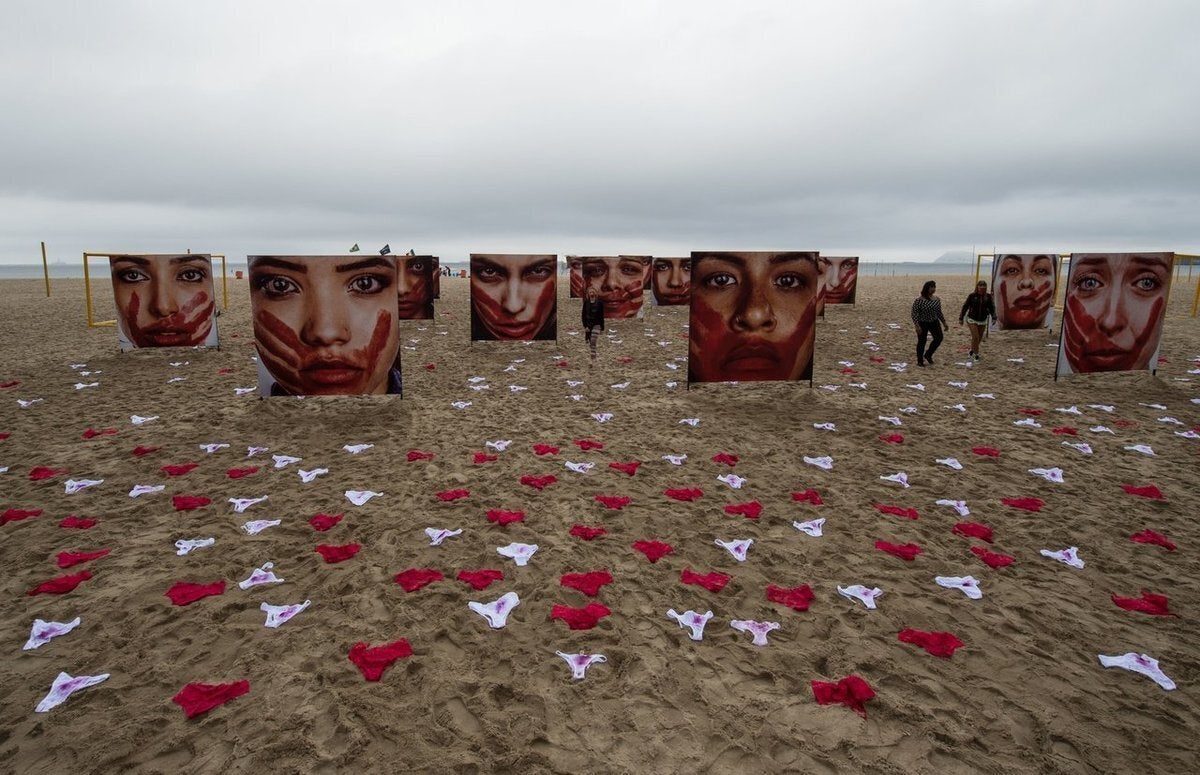 Περισσότερα από 400 ζευγάρια εσωρούχων, κόκκινων ή λευκών και λεκιασμένων με αίμα, κάλυψαν τη διάσημη παραλία Copacabana του Rio de Janeiro τη περασμένη Δευτέρα, στο πλαίσιο μιας εθνικής διαμαρτυρίας κατά της βίας με βάση το φύλο.