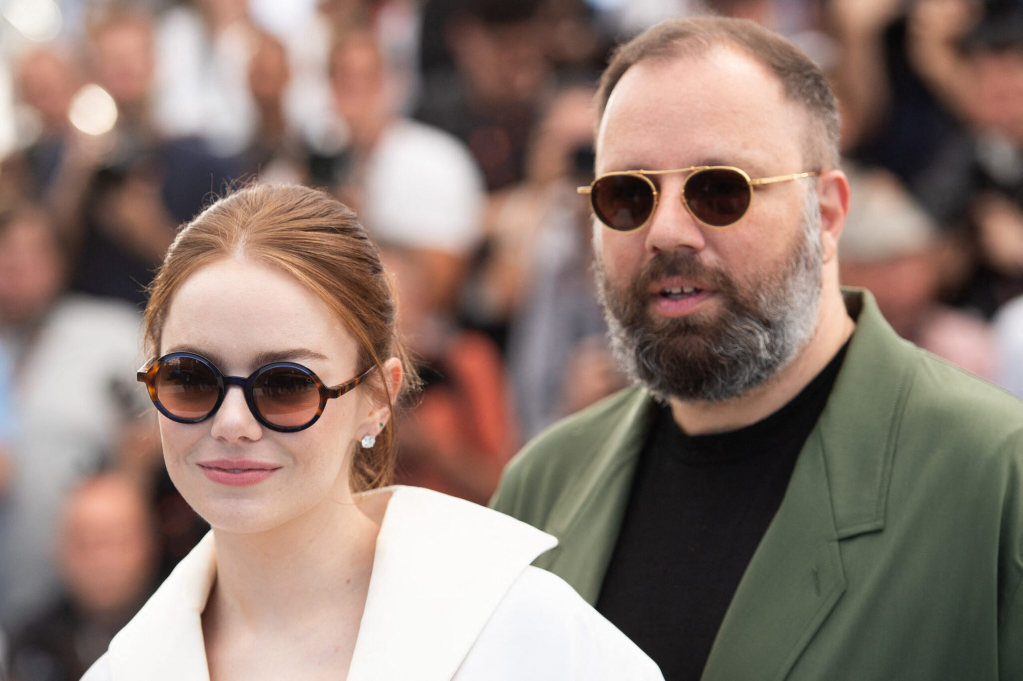 «Εγώ θα μοιραστώ μαζί σας μια πολύ ιδιαίτερη ικανότητα που έχει η Έμμα Στόουν. Ενώ δεν μιλάει ελληνικά πραγματικά πέρα από δυο τρεις λέξεις, ξέρει τέλεια την ελληνική αλφάβητο και μπορεί να διαβάσει οποιοδήποτε κείμενο χωρίς να καταλαβαίνει τι σημαίνει. Οπότε, της έγραψα κάτι στα ελληνικά και της ζήτησα να μας το ηχογραφήσει», είπε ο Γιώργος Λάνθιμος.