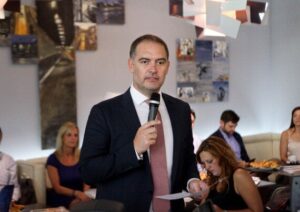 Ο Πρόεδρος της ΕΞΑΑΑ κ. Αλεξ. Βασιλικός κατά τη διάρκεια παρουσίασης της δράσης «Οι πέτρες μιλούν» στο καφέ του Εθνικού Αρχαιολογικού Μουσείου