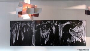 Στο πιο όμορφο αίθριο της Αθήνας, στο καφέ του Εθνικού Αρχαιολογικού Μουσείου, παρουσιάζεται η έκθεση του Γιώργου Κόρδη, με τίτλο «Ομηρικά ακρογιάλια». Με έμπνευση τις ομηρικές αναγωγές στο αφήγημα της περιοδικής επετειακής έκθεσης «Οδύσσειες», ο ζωγράφος δημιούργησε μια σειρά έργων που αποτυπώνουν αρχετυπικές μορφές του έργου του Ομήρου.
