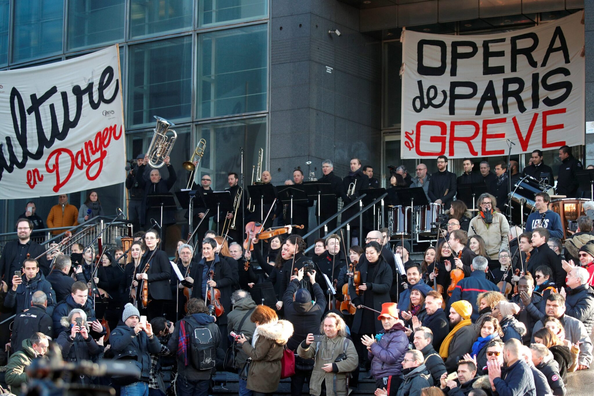 Οι μουσικοί της Όπερας του Παρισιού, όπως και οι χορευτές αντιδρούν στη συνταξιοδοτική μεταρρύθμιση μαζί με τους εργαζομένους του ευρύτερου δημόσιου τομέα -περιλαμβανομένων των ερμηνευτών της κρατικής σκηνής Comedie Francaise.
