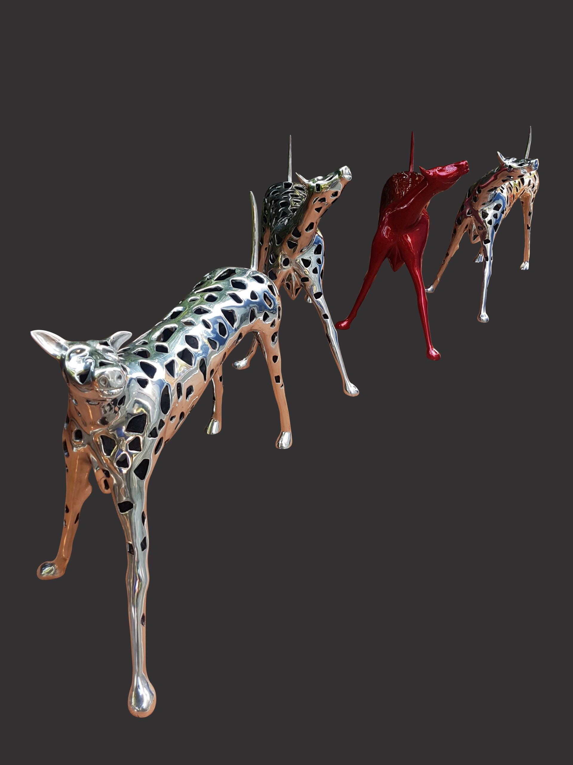 Μεταξύ των γλυπτών που θα εκτεθούν, θα υπάρχουν και γλυπτικές εγκαταστάσεις με τους γνωστούς κόκκινους ακροβάτες-χορευτές μνημειακών διαστάσεων, εγκατεστημένους σε δημόσιους χώρους και πλατείες στην Ευρώπη, την Αμερική και την Κίνα.
